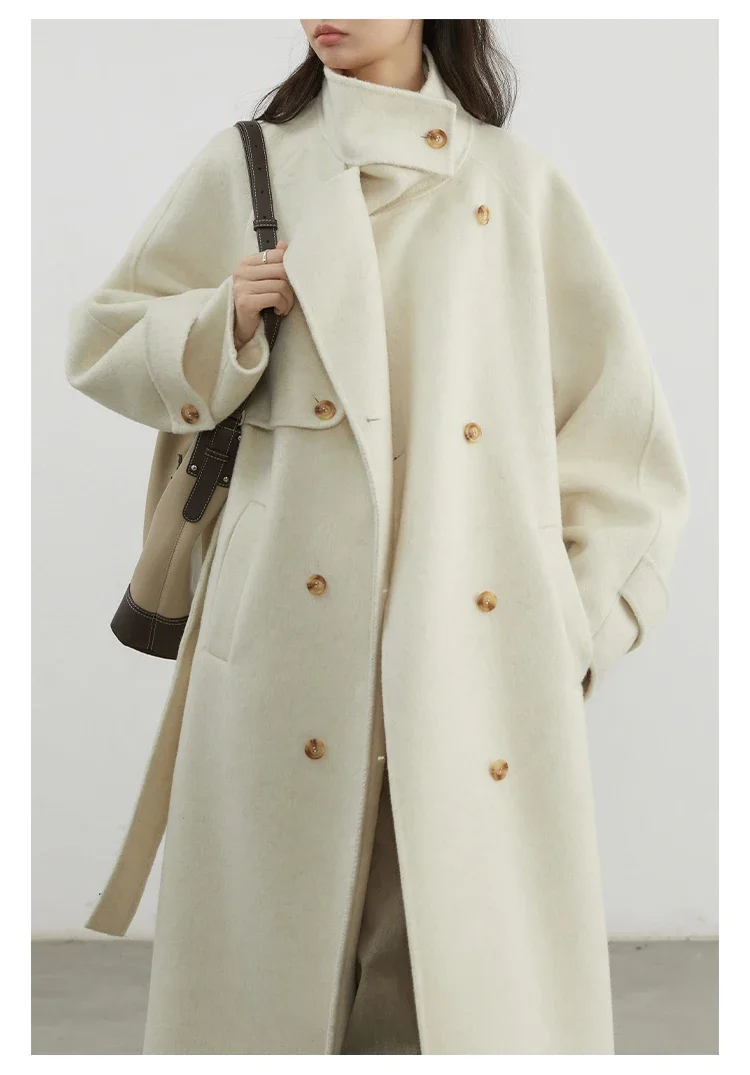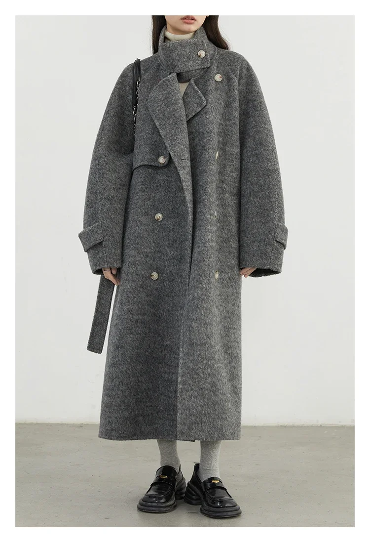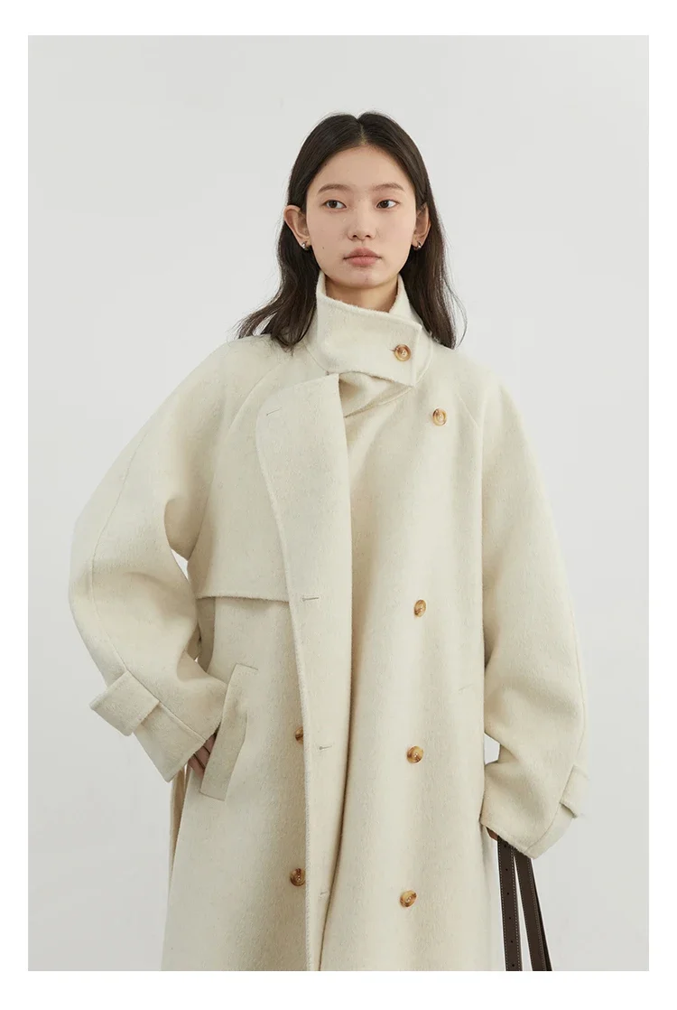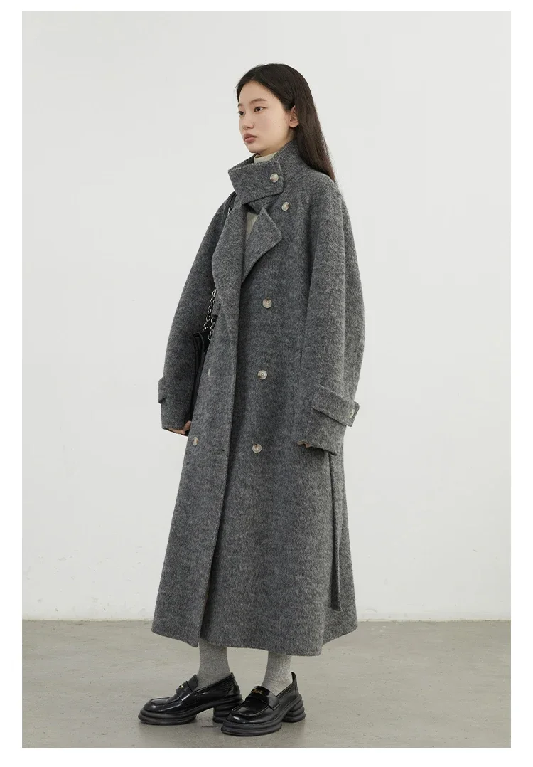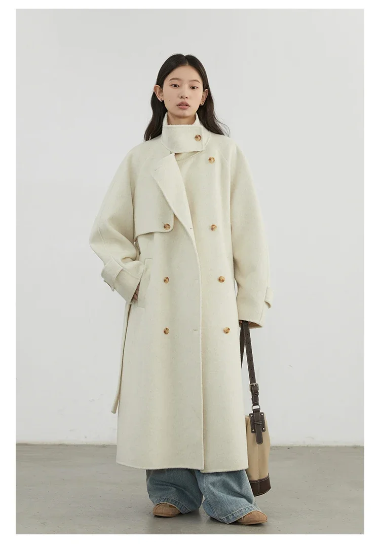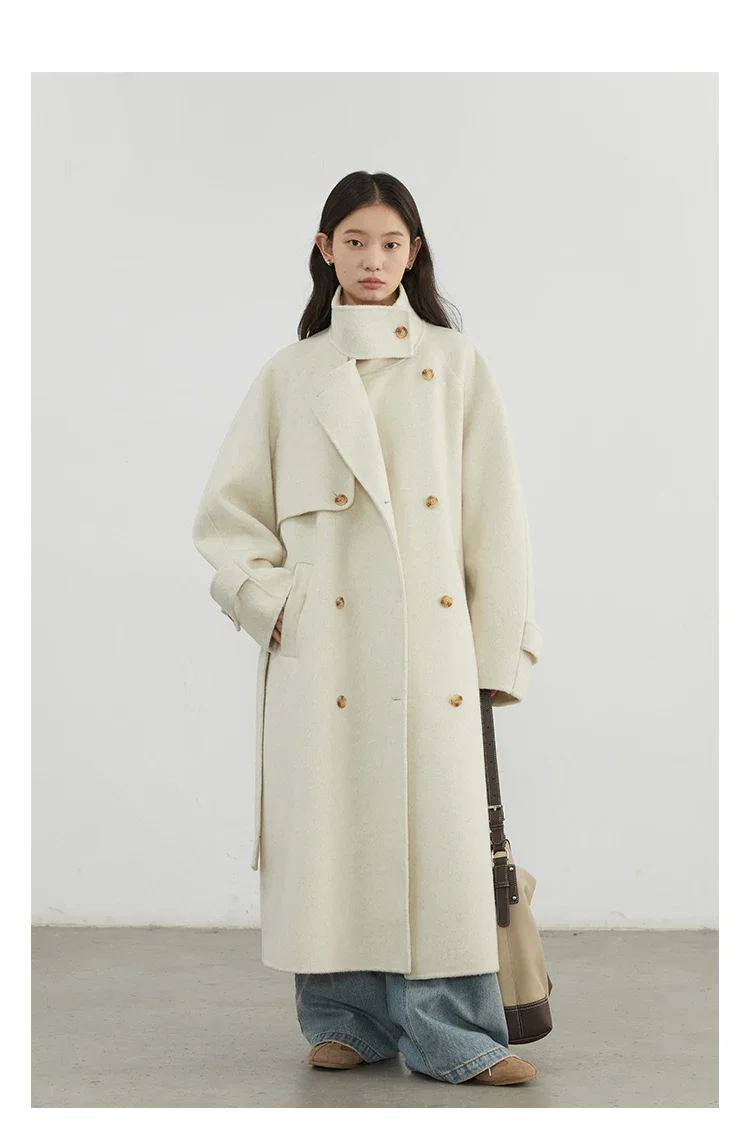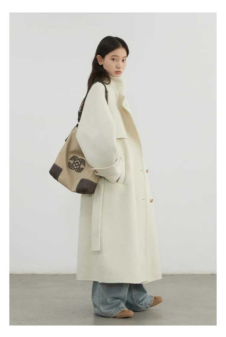 CHIC VEN Cappotti di lana da donna Moda Solid Stand Colletto Cappotto allentato con cintura Abbigliamento femminile coreano Autunno Inverno Nuovo 2025 1CHIC VEN Cappotti di lana da donna Moda Solid Stand Colletto Cappotto allentato con cintura Abbigliamento femminile coreano Autunno Inverno Nuovo 2025