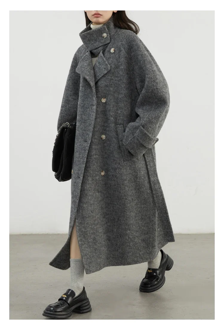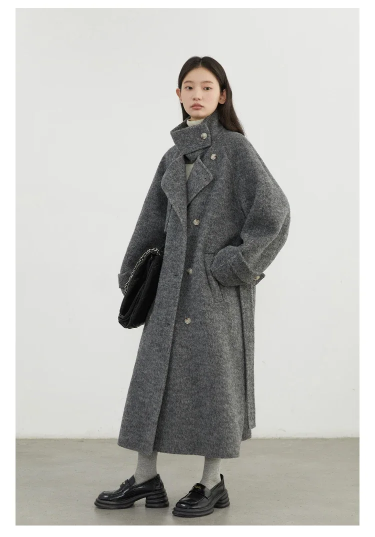 CHIC VEN Cappotti di lana da donna Moda Solid Stand Colletto Cappotto allentato con cintura Abbigliamento femminile coreano Autunno Inverno Nuovo 2025