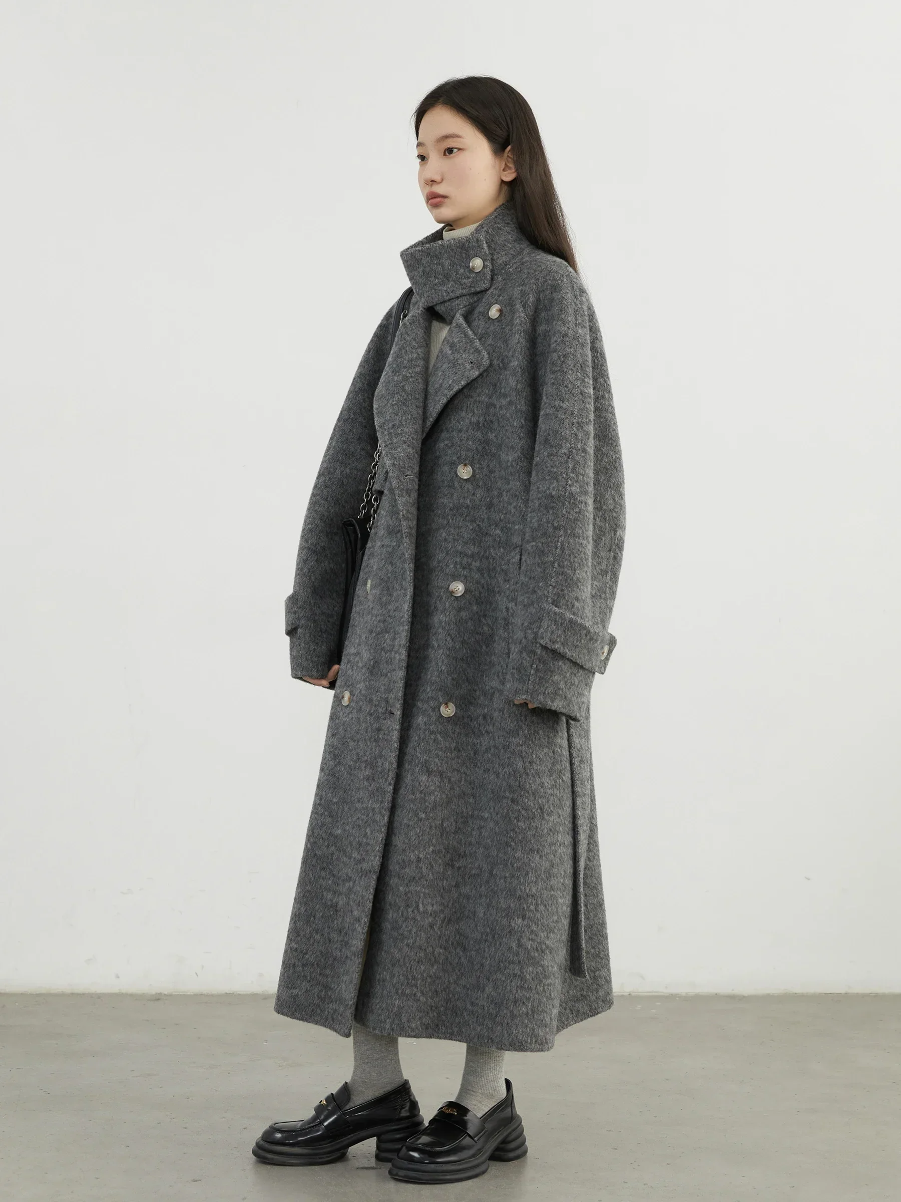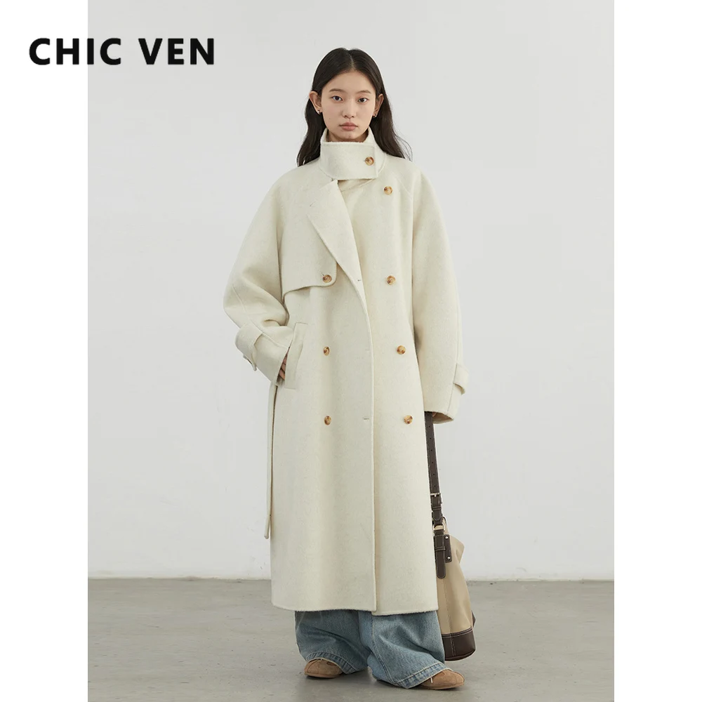 CHIC VEN Cappotti di lana da donna Moda Solid Stand Colletto Cappotto allentato con cintura Abbigliamento femminile coreano Autunno Inverno Nuovo 2025