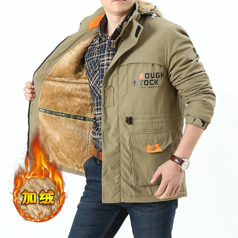 CHUJIE Giacca da uomo autunno e inverno più velluto spesso di mezza età e giovane giacca casual di media lunghezza da esterno