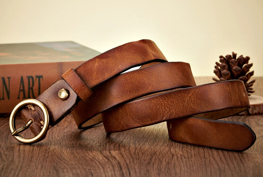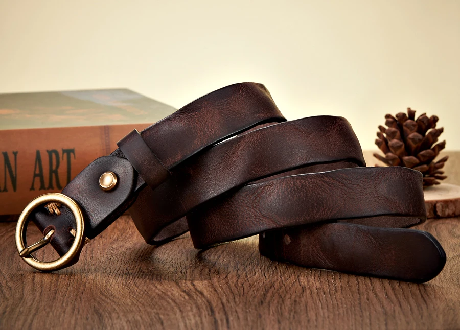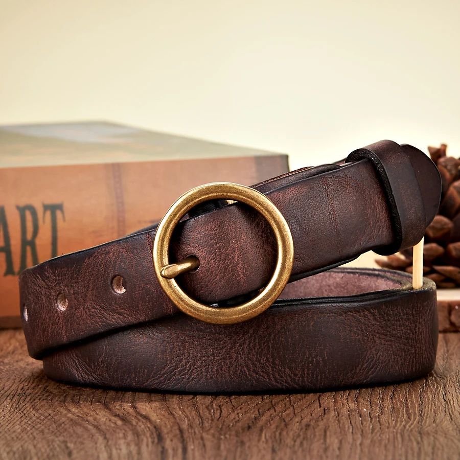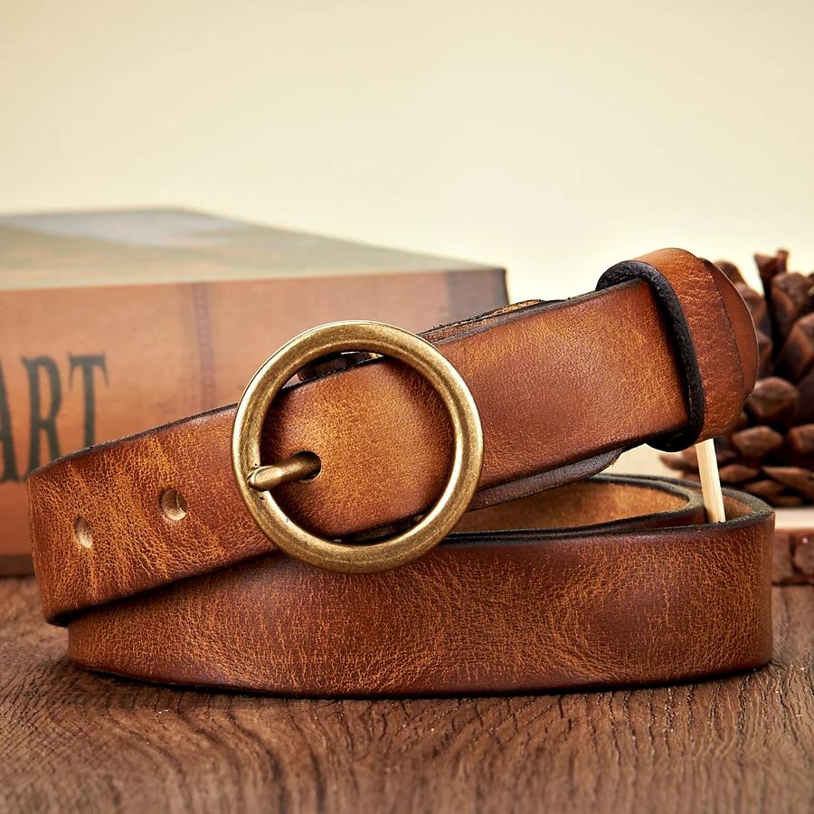 Cintura da donna in vera pelle da 2,5 cm Cintura da donna in pelle di vitello con fibbia rotonda in rame di lusso Cintura in vita semplice per jeans Colore caramellaPensa ad un Regalo Unico e Utile per le Persone a te Vicine!! Regala un buono a partire da € 10,00 a € 300,00