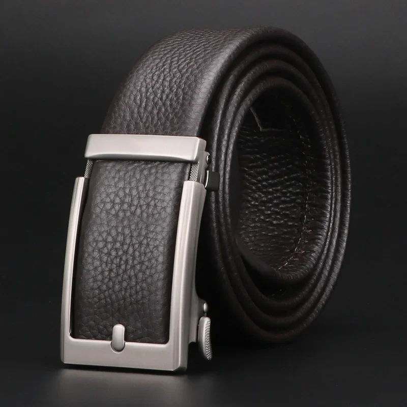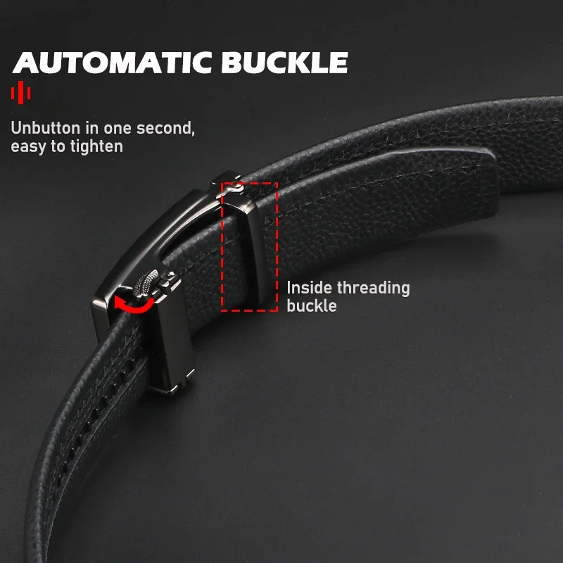 Cintura da uomo in pelle bovina con strato superiore Premium-morbida, resistente ed elegante con fibbia in lega automatica per abbigliamento da lavoro