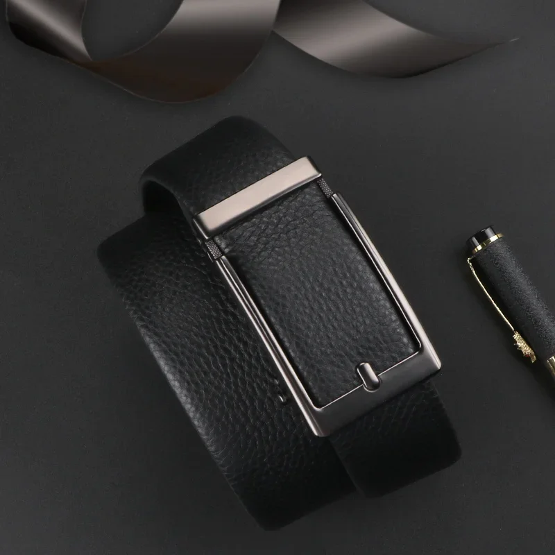 Cintura da uomo in pelle bovina con strato superiore Premium-morbida, resistente ed elegante con fibbia in lega automatica per abbigliamento da lavoro