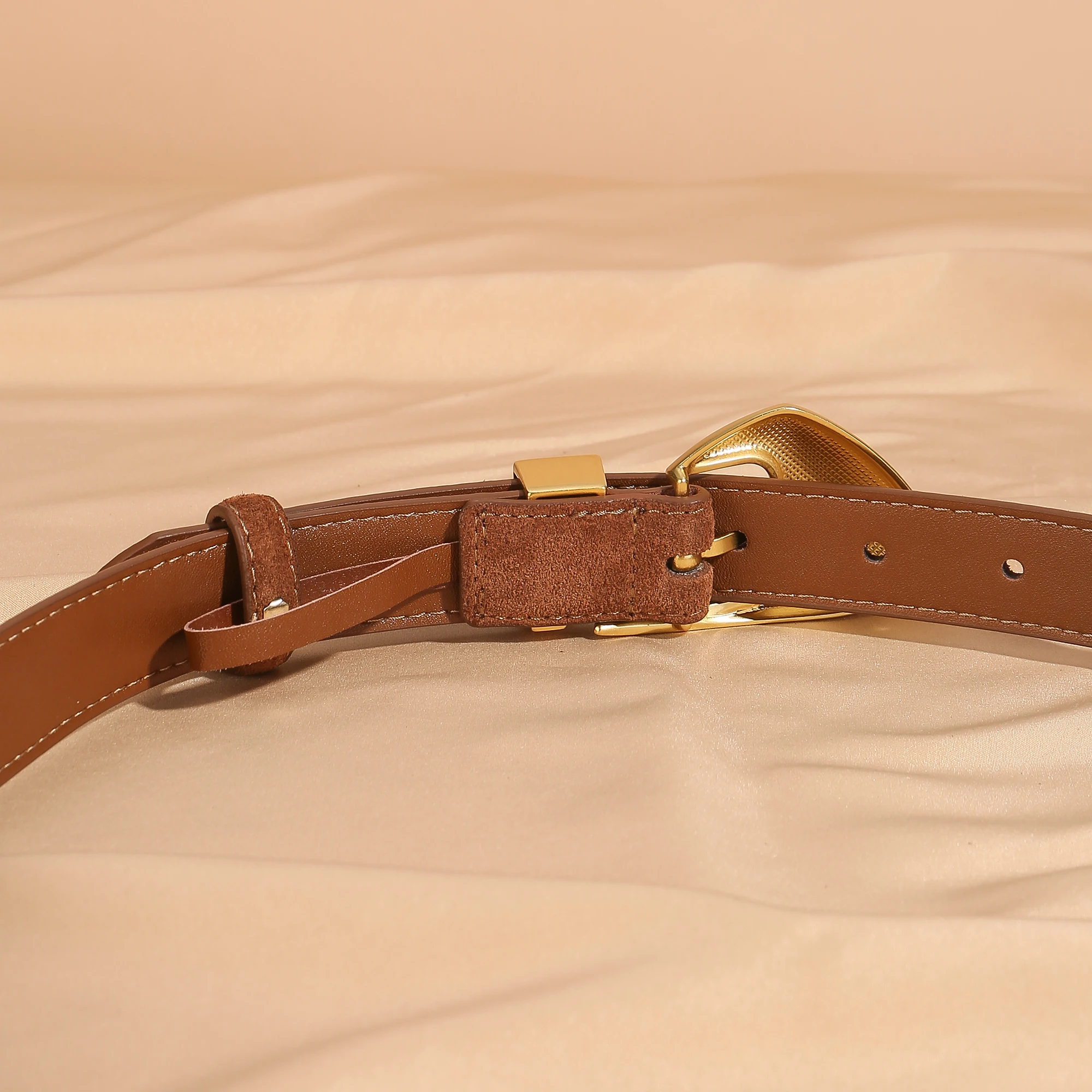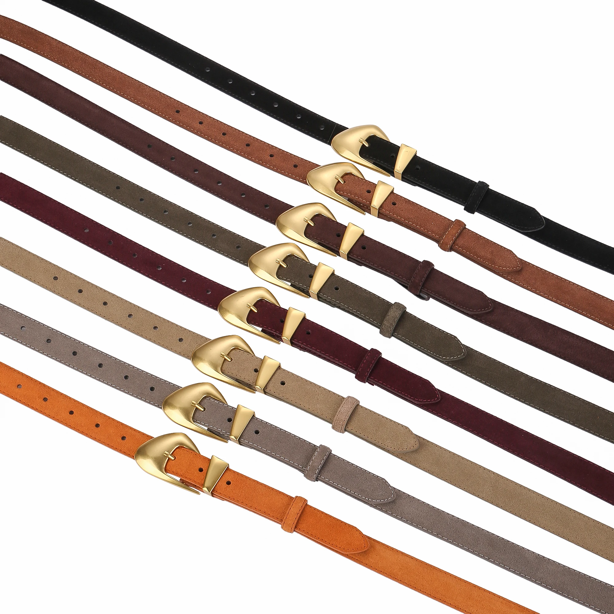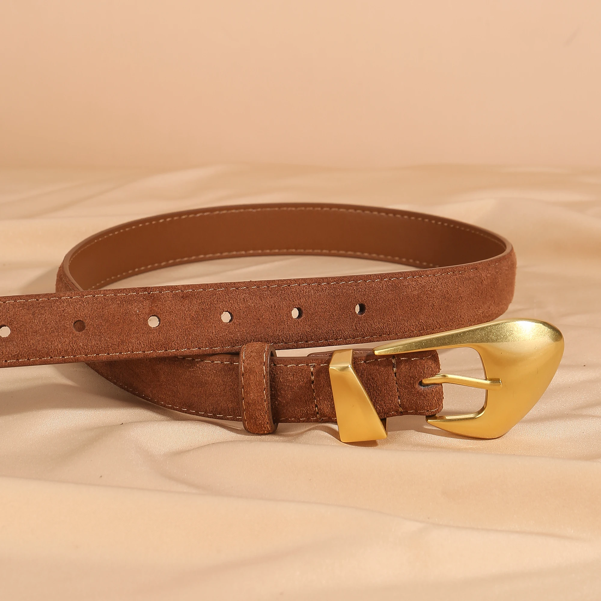 Cintura di lusso in pelle scamosciata di vacchetta per donna Cinture moda casual con fibbia dorata Cintura larga 2,3 cm per abiti Jeans