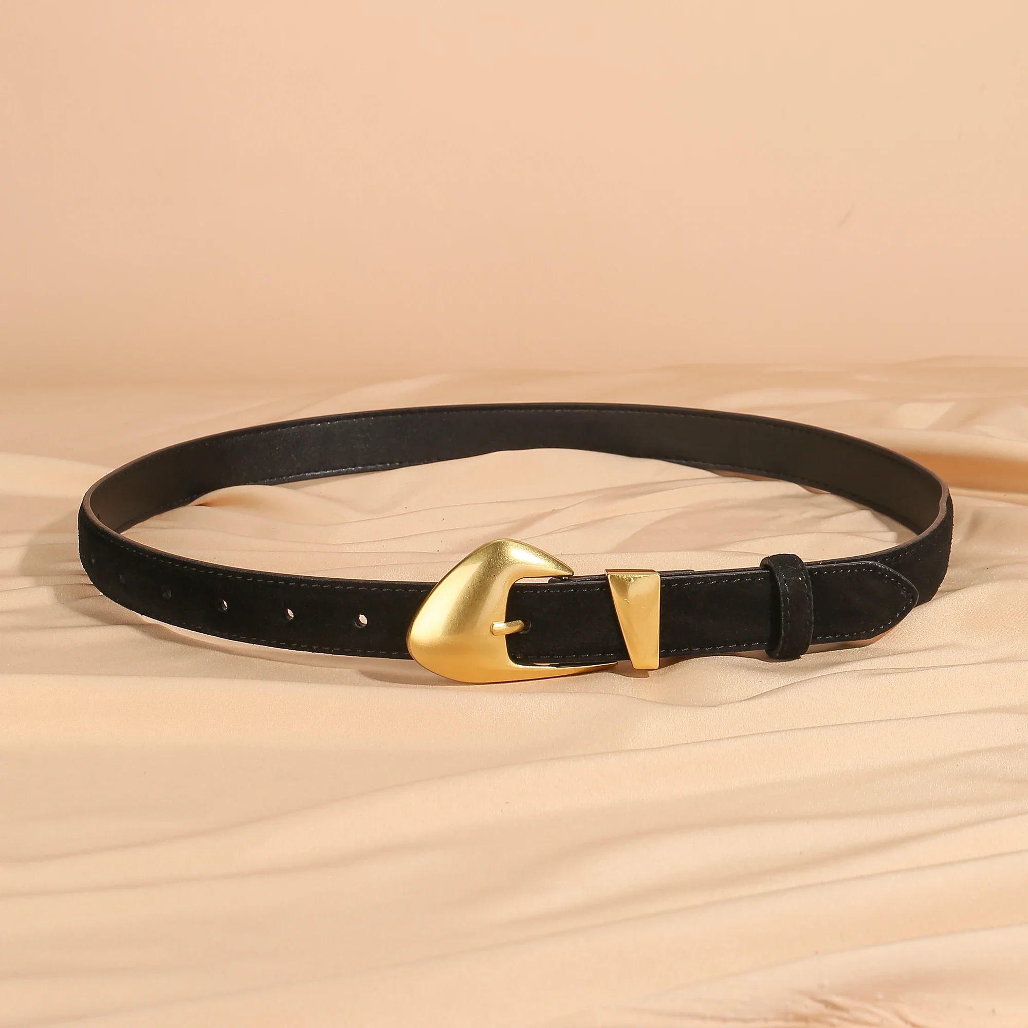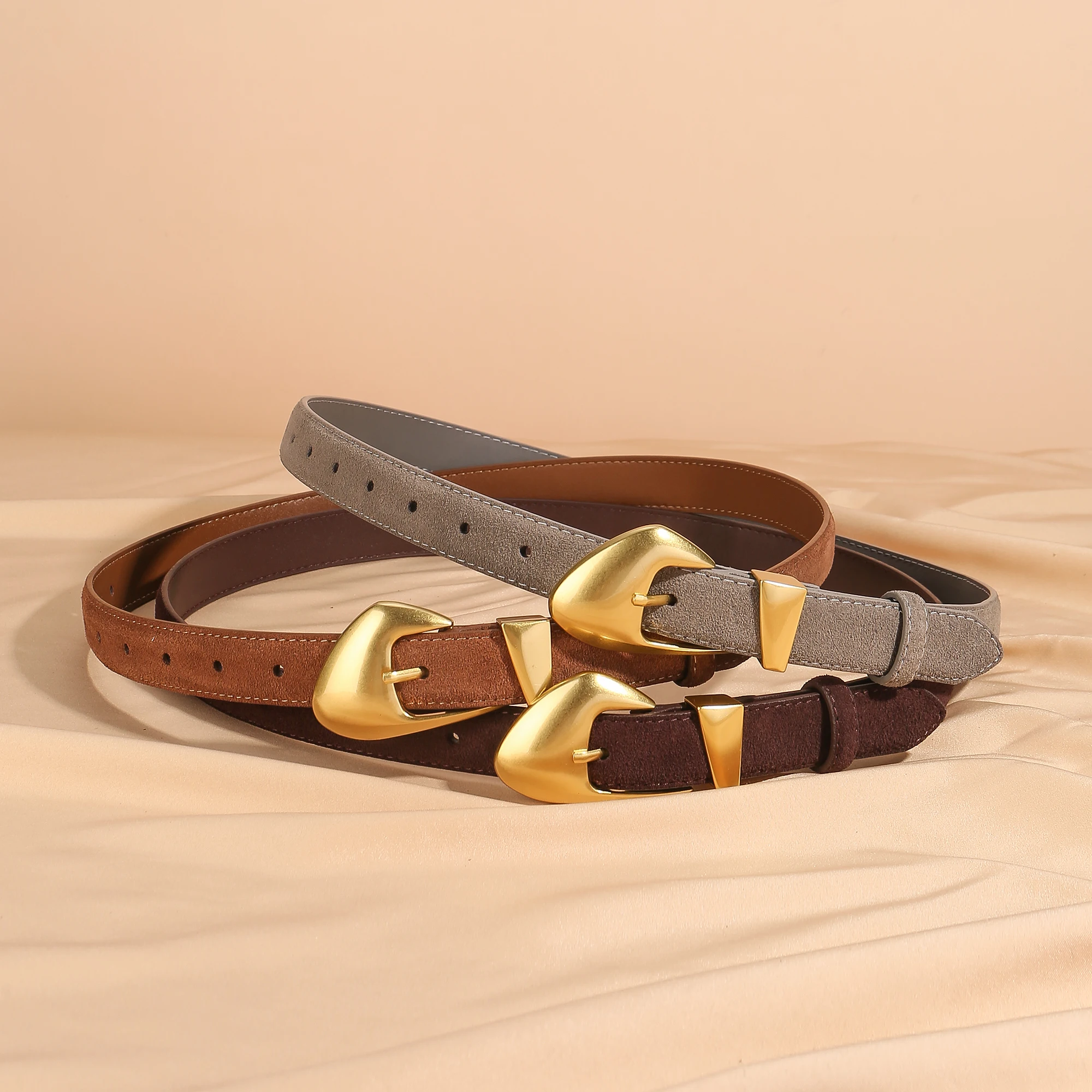 Cintura di lusso in pelle scamosciata di vacchetta per donna Cinture moda casual con fibbia dorata Cintura larga 2,3 cm per abiti Jeans