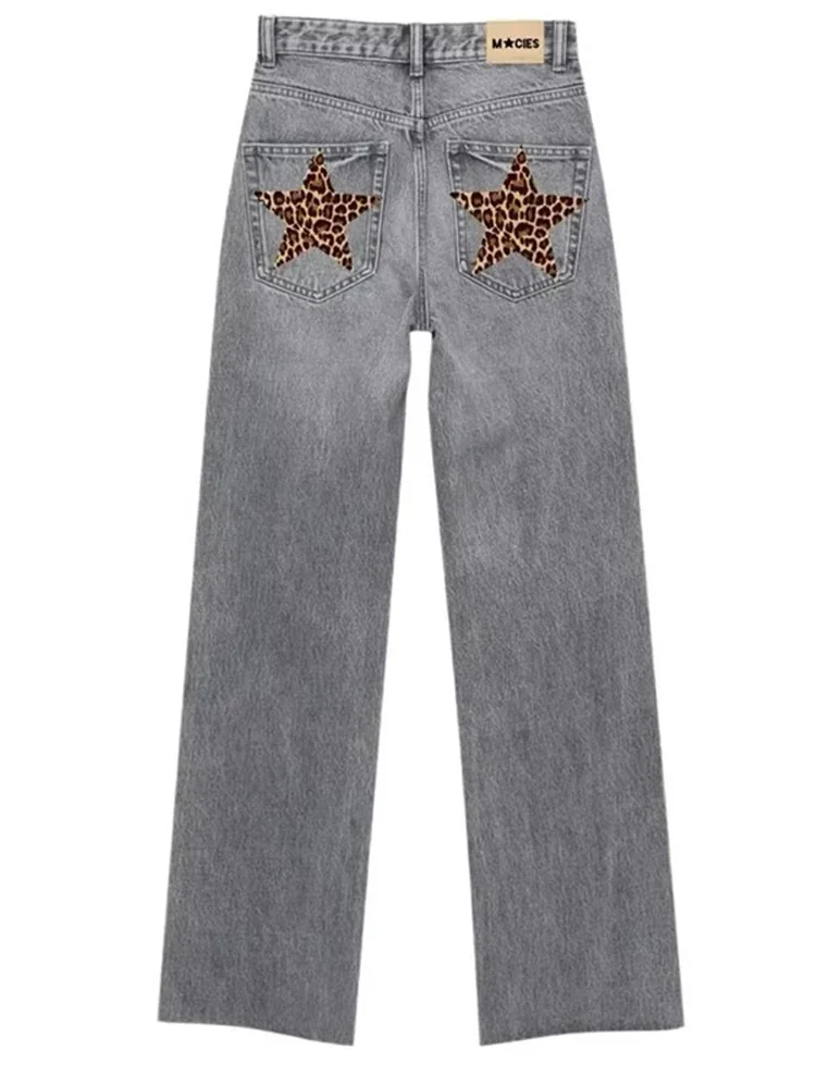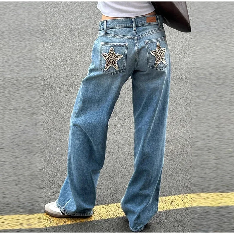 Toppe uniche: La stella accattivante e le toppe di altre forme sulle tasche posteriori aggiungono un fascino distinto e audace, facendo risaltare questi jeans.
