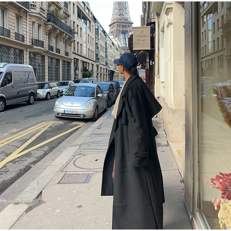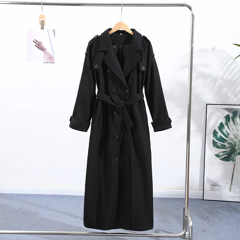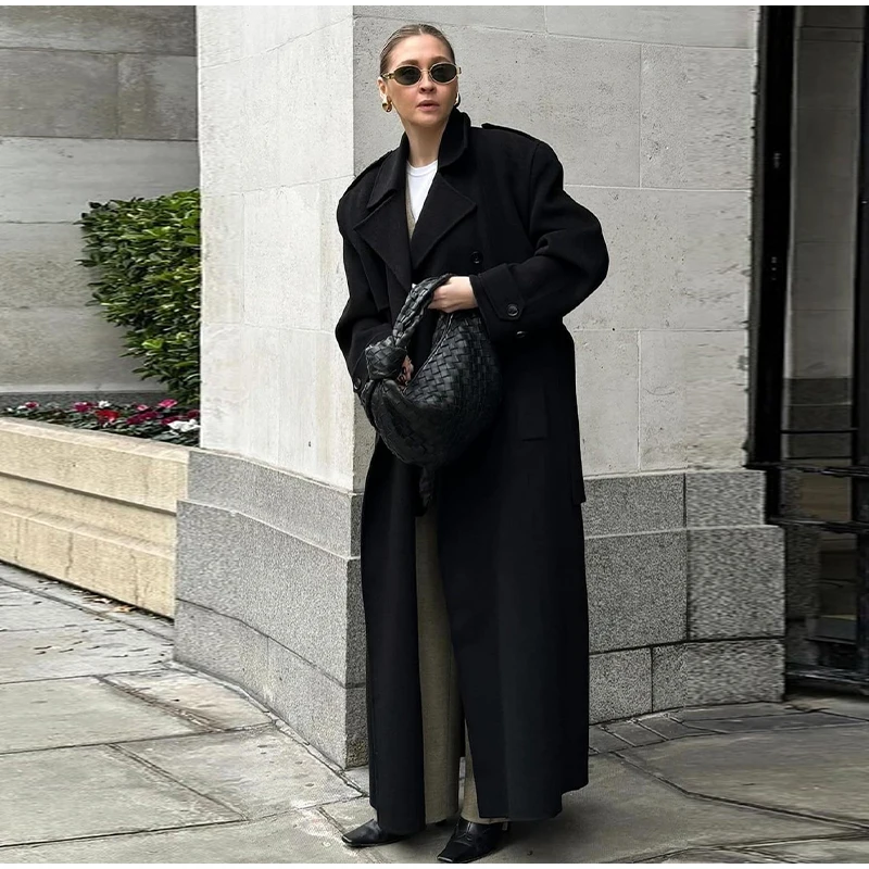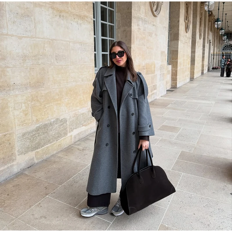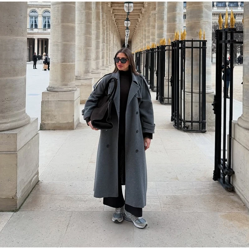 Obsessed con questo cappotto lungo grigio!Il design a doppio petto dà un fascino senza tempo, perfetto per un chic senza sforzo.