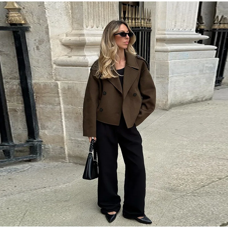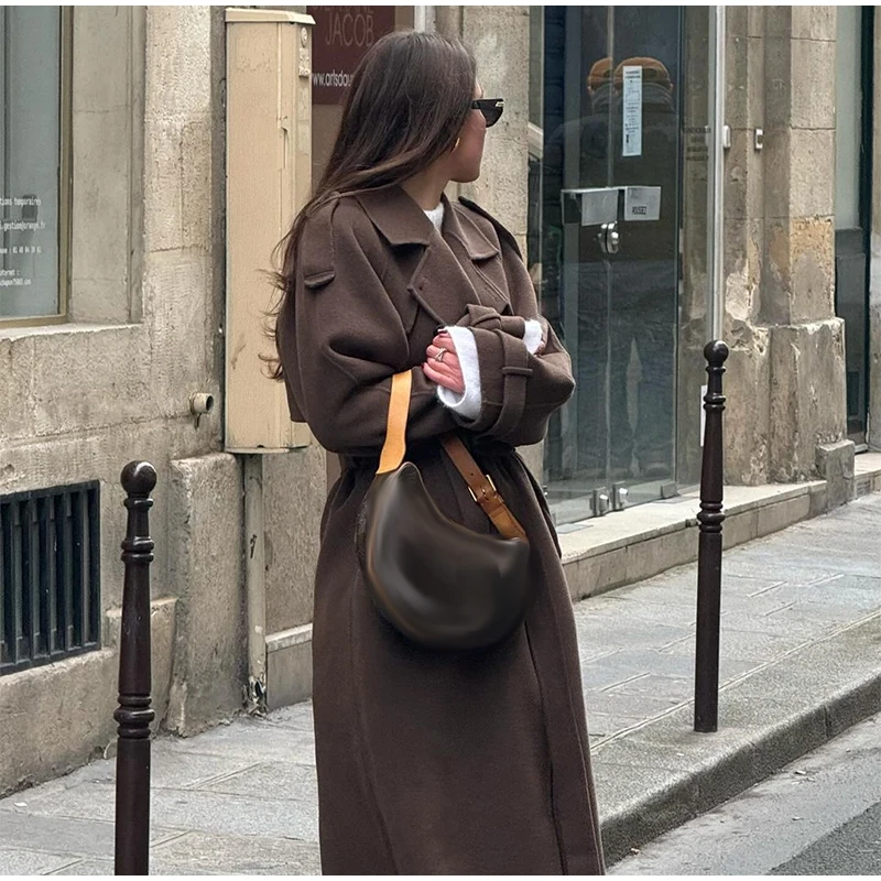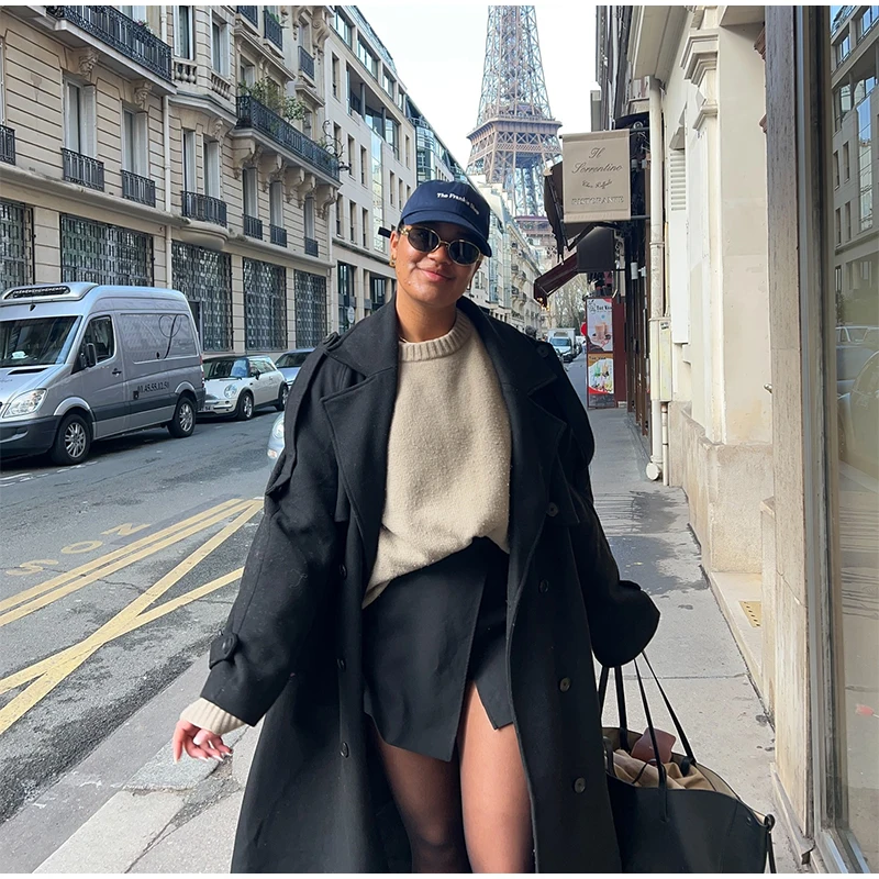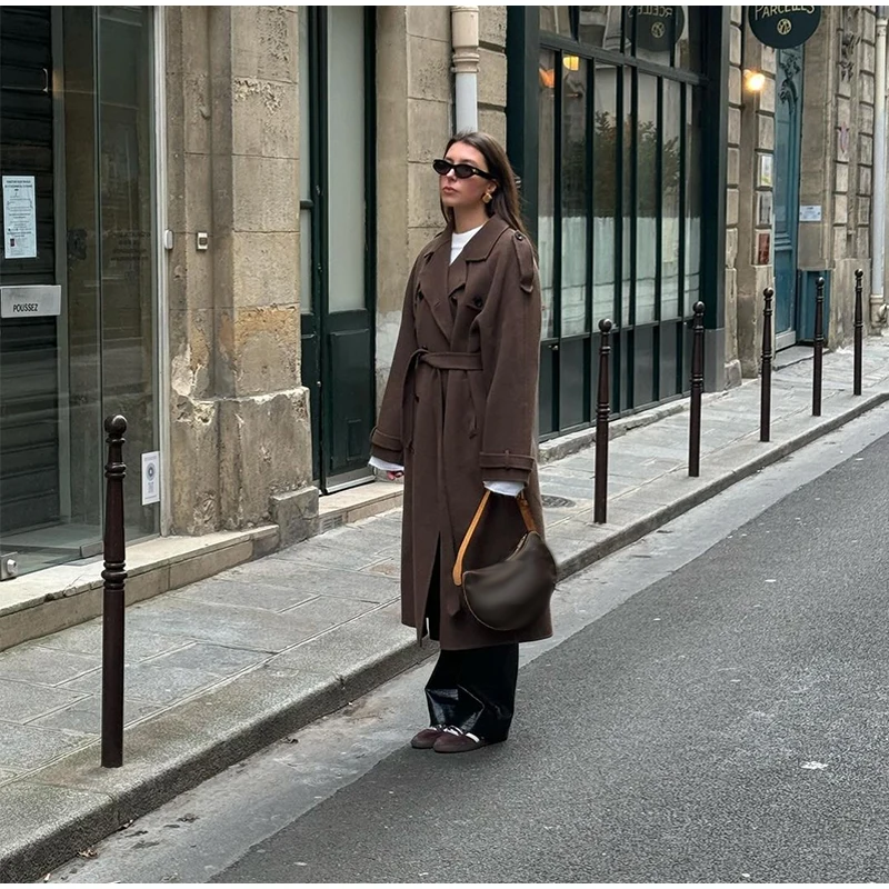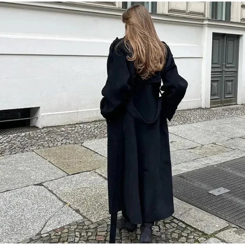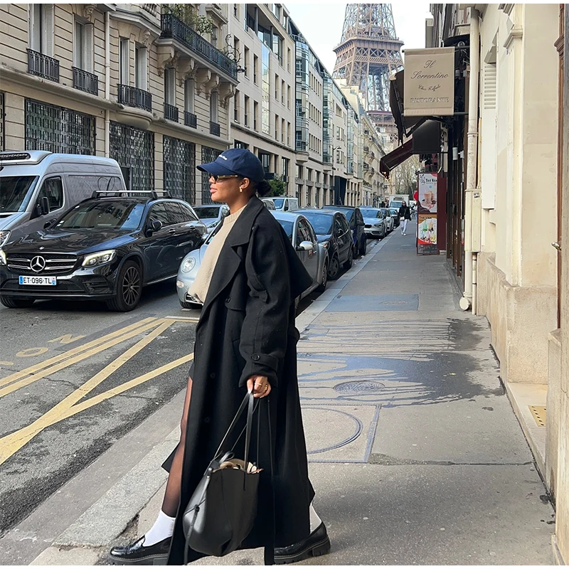 Obsessed con questo cappotto lungo grigio!Il design a doppio petto dà un fascino senza tempo, perfetto per un chic senza sforzo.
