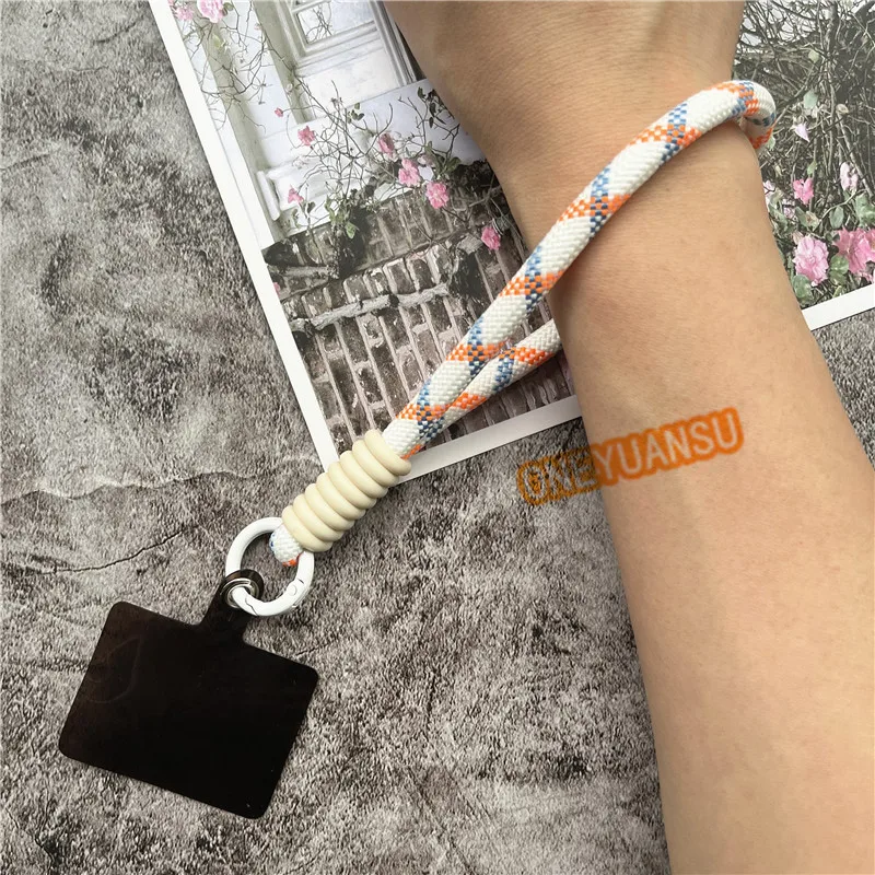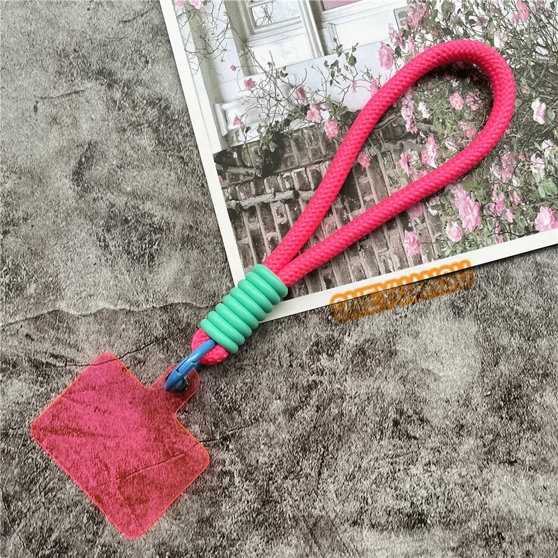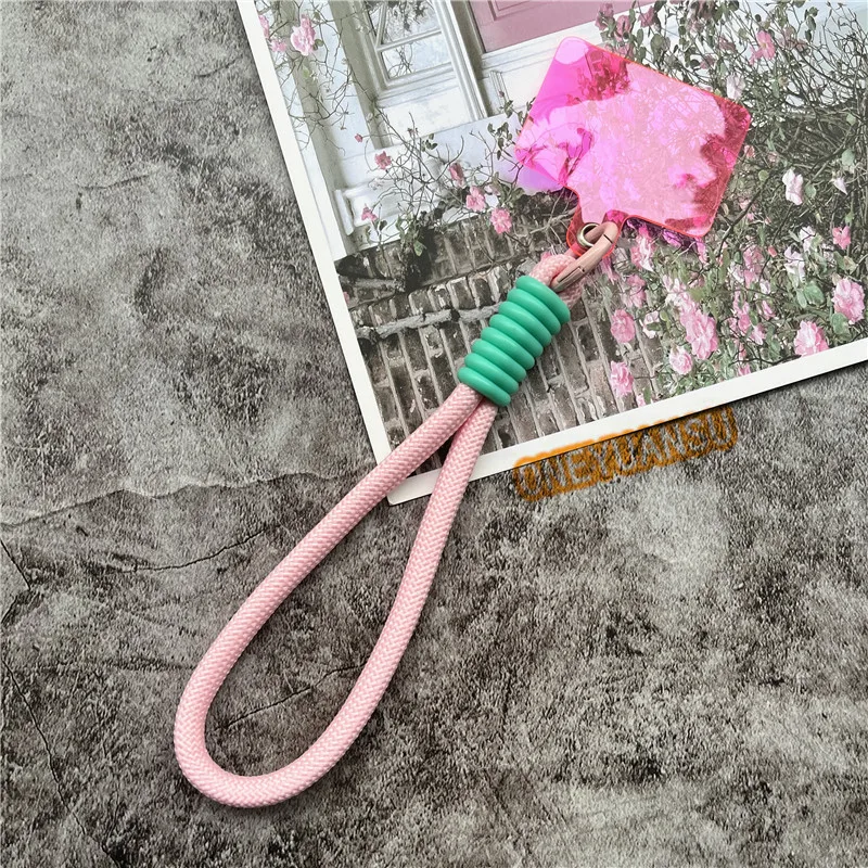 ????Nome del prodotto: Cinturino da polso per telefono Colori contrastanti Cordino Chiavi Portachiavi in metallo Accessori