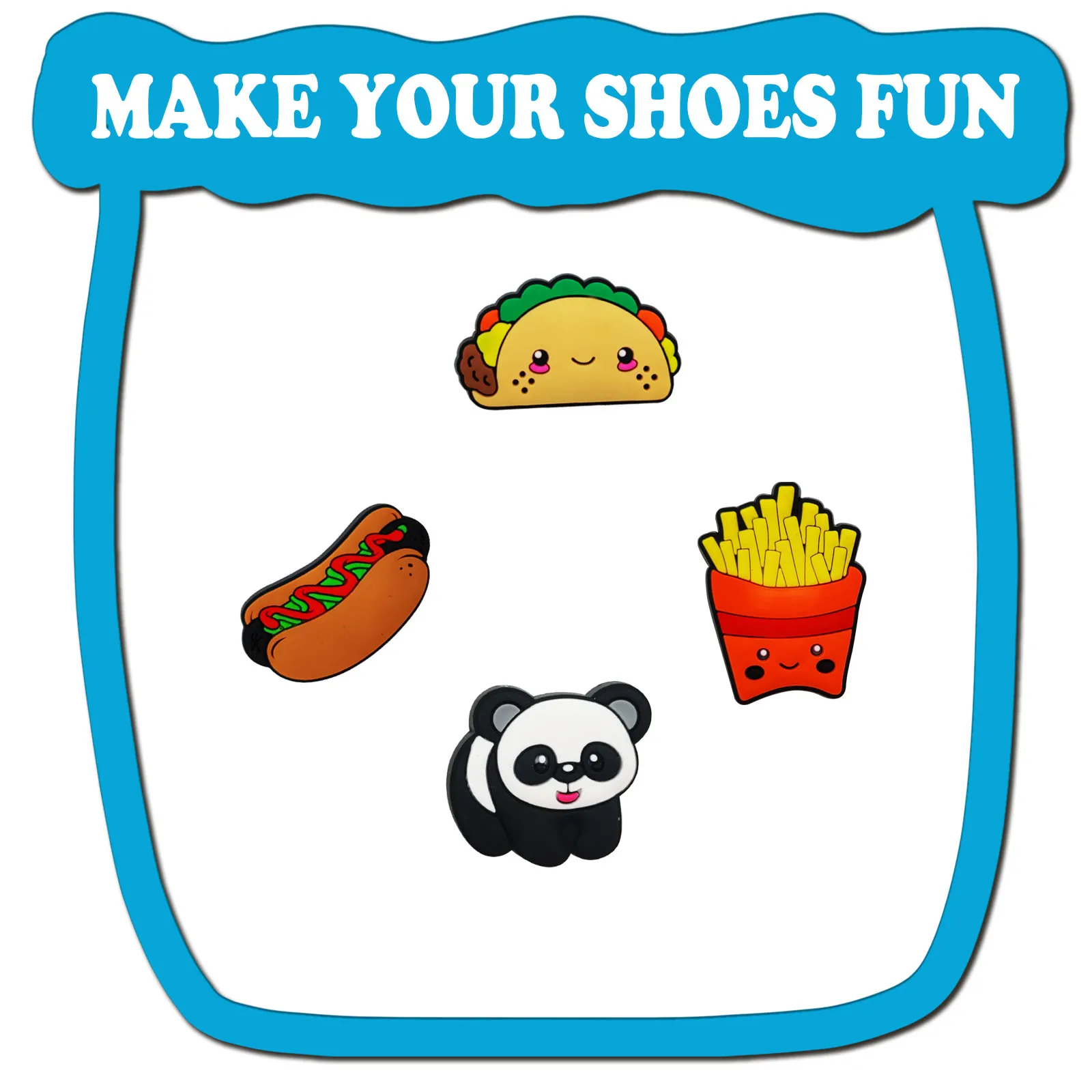 【BUENO MATERIALE QIALITT】- I nostri ciondoli per scarpe sono realizzati in materiale PVC impermeabile non tossico di buona qualità.Dopo test rigoristici, sono durevoli, non facilmente deformabili e non sbiadiscono.