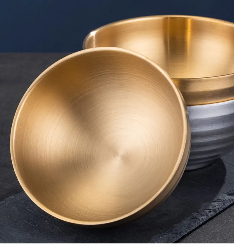 3.Il design a doppio strato della ciotola in acciaio inossidabile ha un effetto di isolamento termico, quindi non è necessario preoccuparti sulla zuppa calda e i piatti caldi danneggiano le mani.