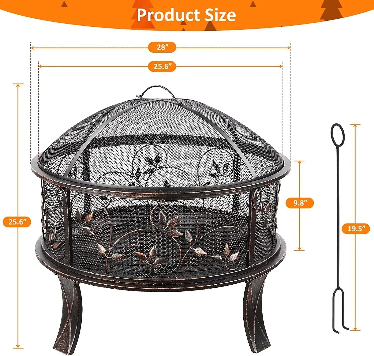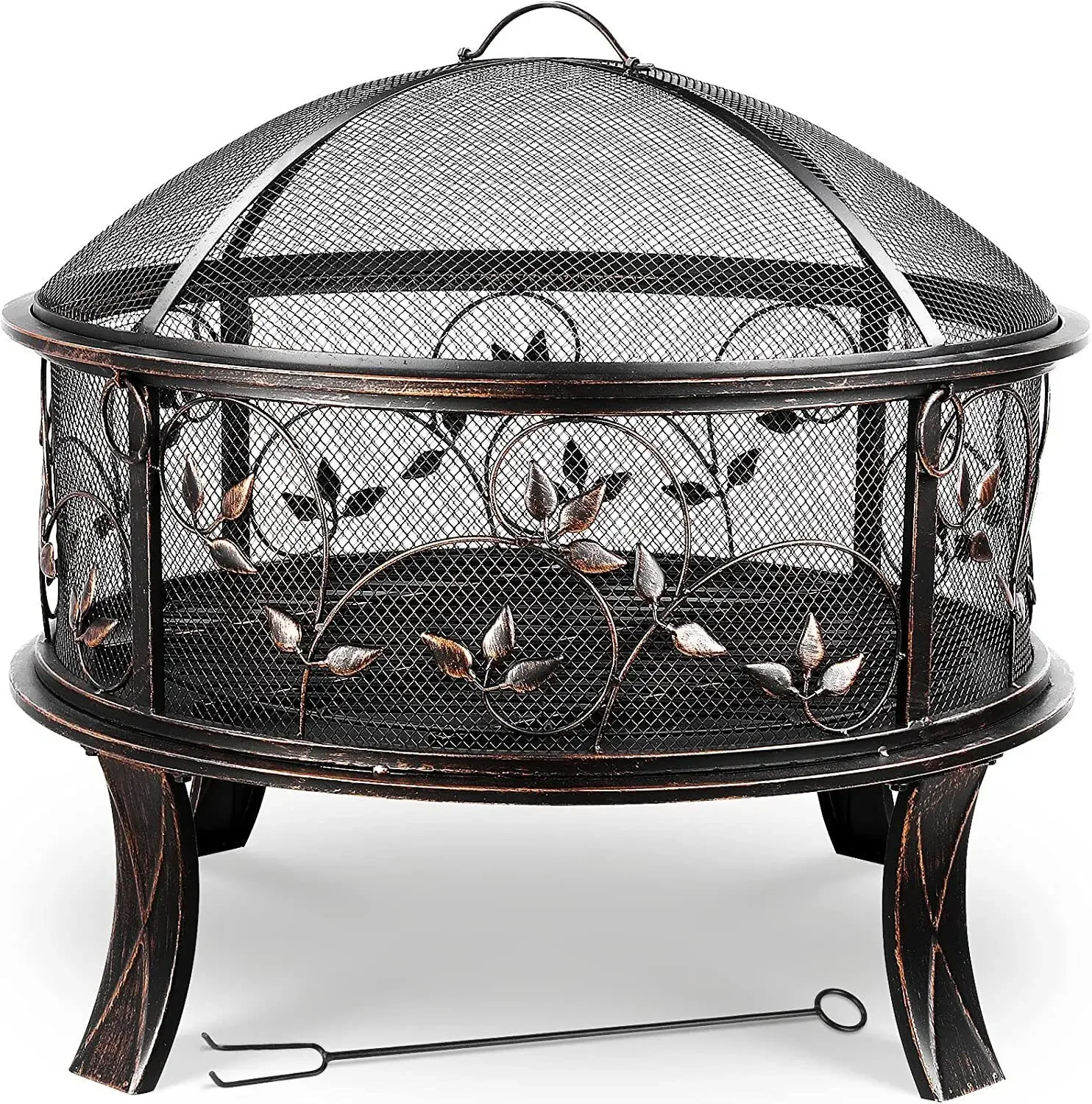 Fire Bowls, Fire Basket con Spark Guard, Fire Bowl Garden 6. 71 x65cm, camino Retro Look, Incl. Griglia per Poker e carbone di legna, riscaldamento in stalla invernale, motivo floreale, per giardino, campeggio, spiaggia