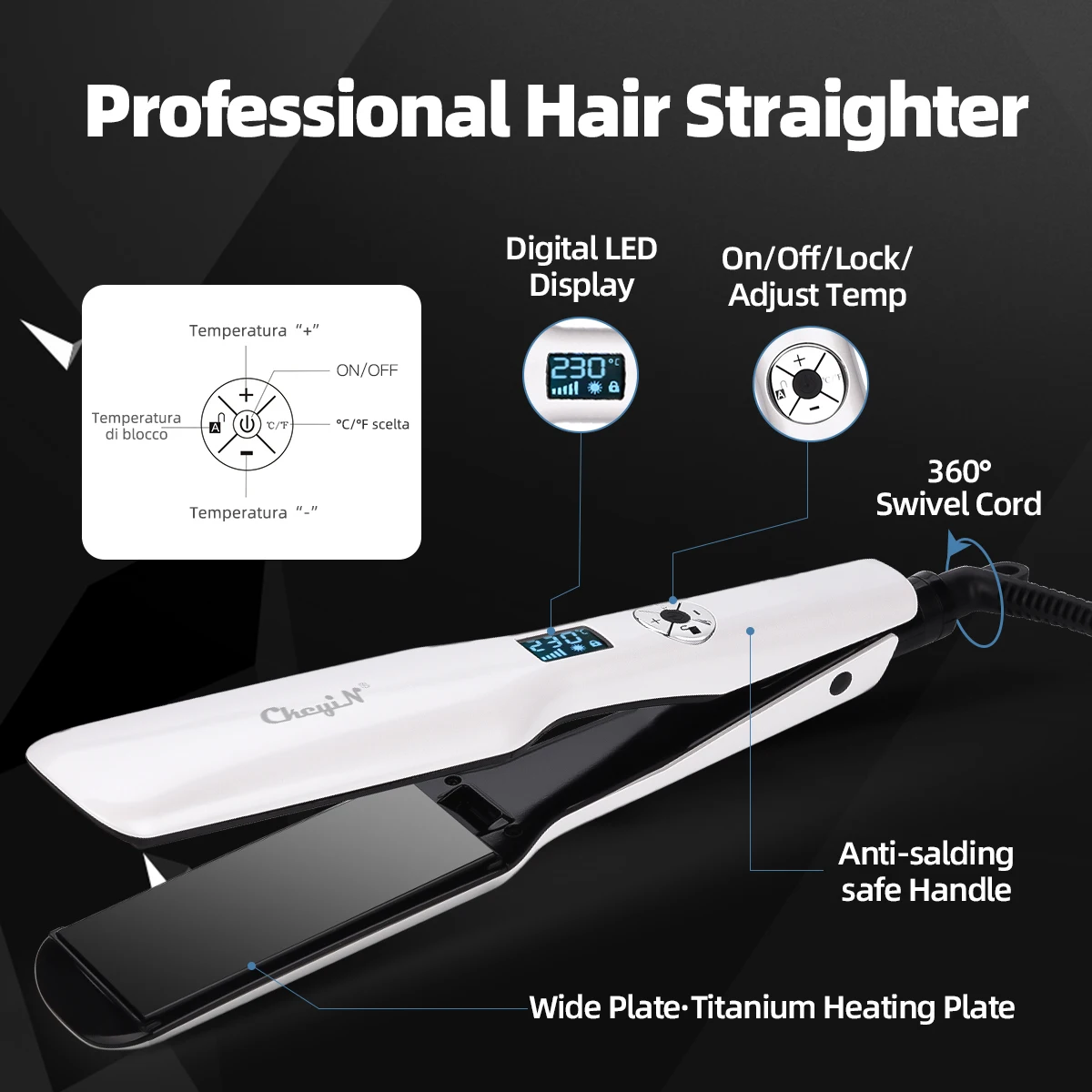 Chikeyin 44mm capelli lisci display lcd rapido riscaldamento PTC piastra in ceramica ferro piatto regolabile temperatura raddrizzamento ferri