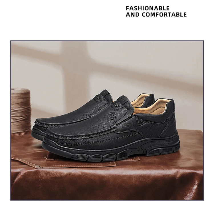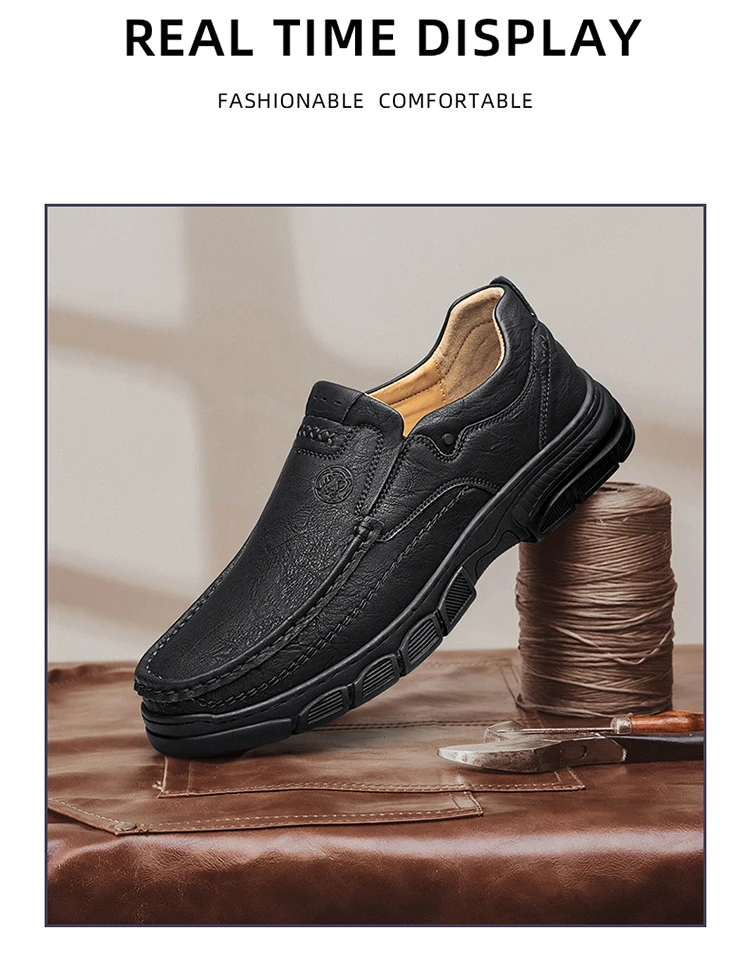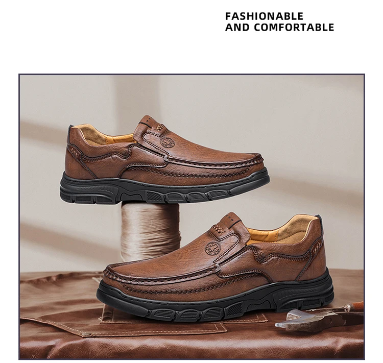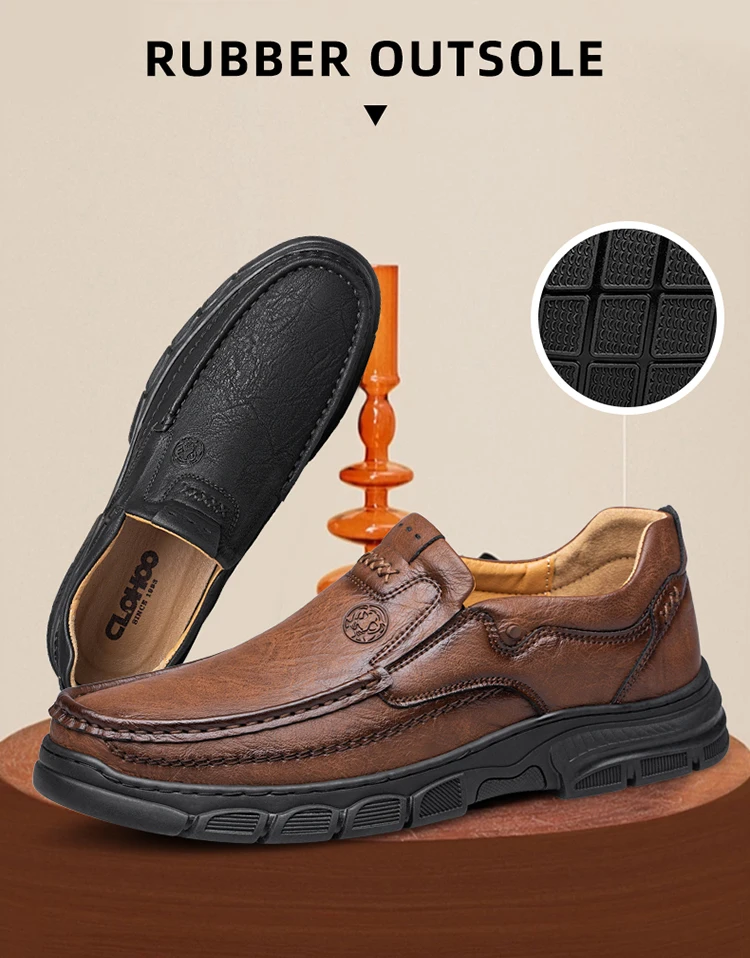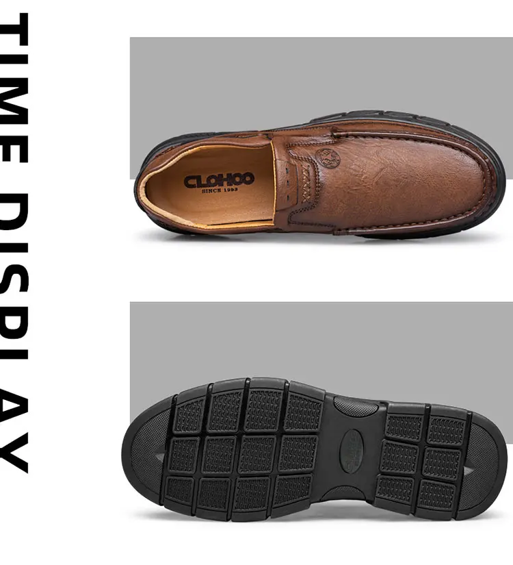 CLOHOO Scarpe da uomo in pelle casual traspiranti con fondo in gomma spessa fatte a mano Mocassini cuciti classici Calzature comode per il tempo libero