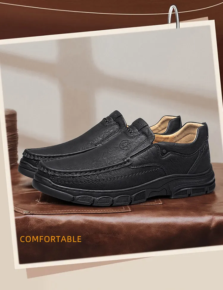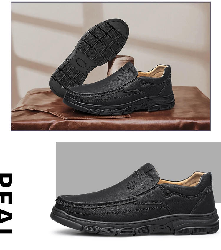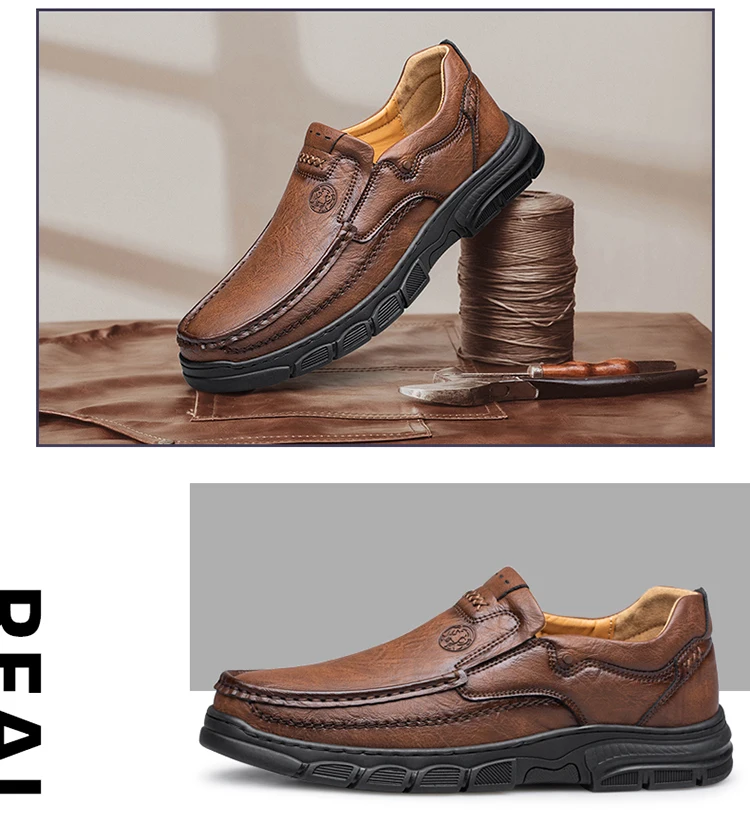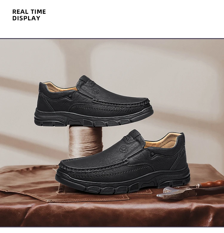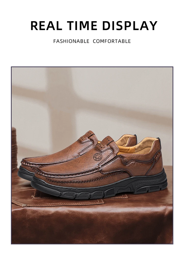 CLOHOO Scarpe da uomo in pelle casual traspiranti con fondo in gomma spessa fatte a mano Mocassini cuciti classici Calzature comode per il tempo libero