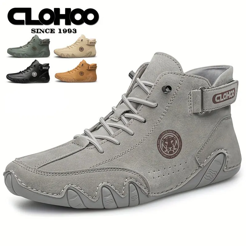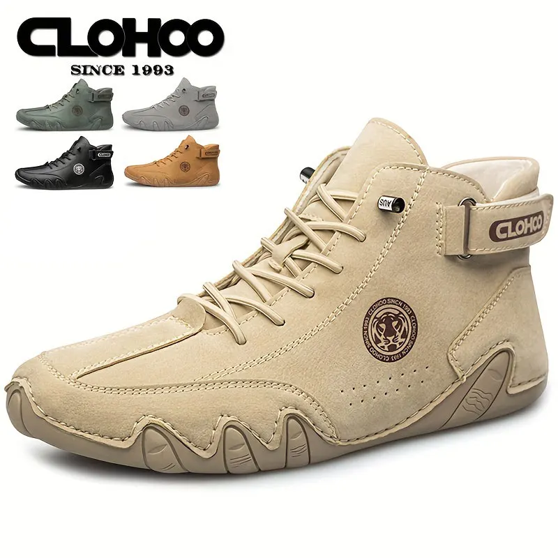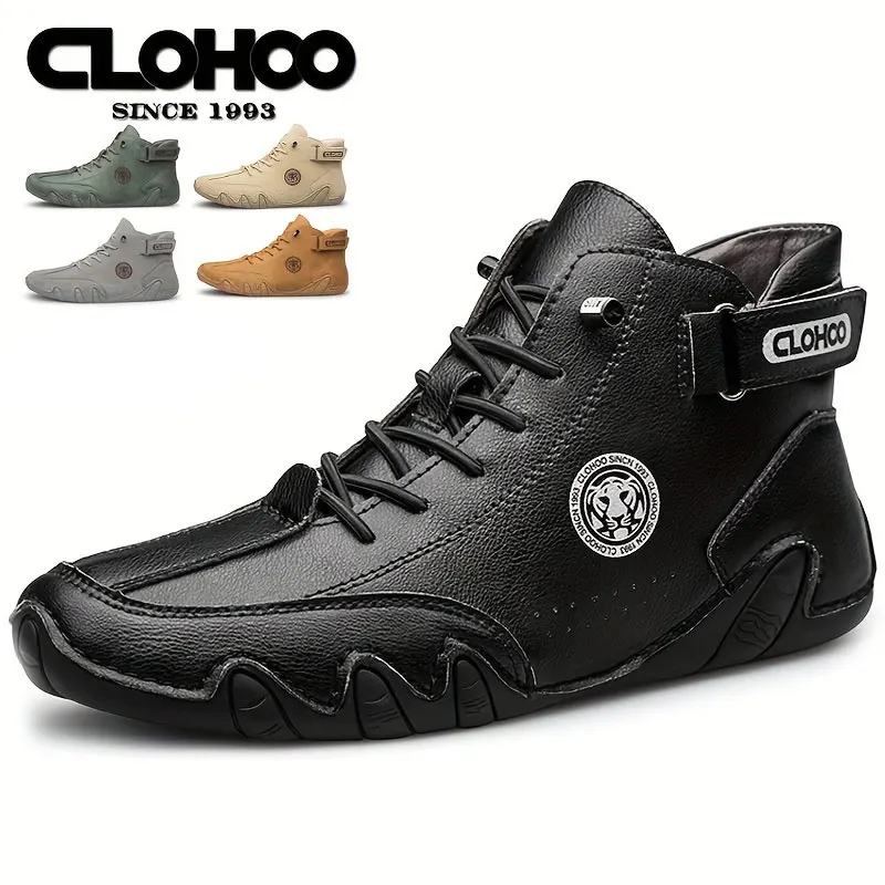 CLOHOO Stivali corti da uomo con design a forma di polpo cuciti a mano Stivali da equitazione alti in pelle Calzature da uomo alla moda