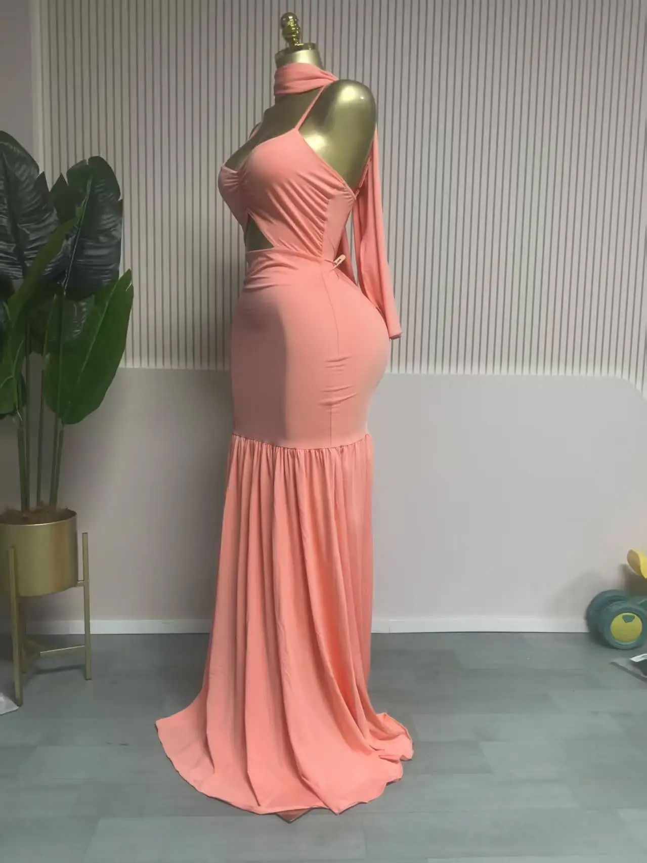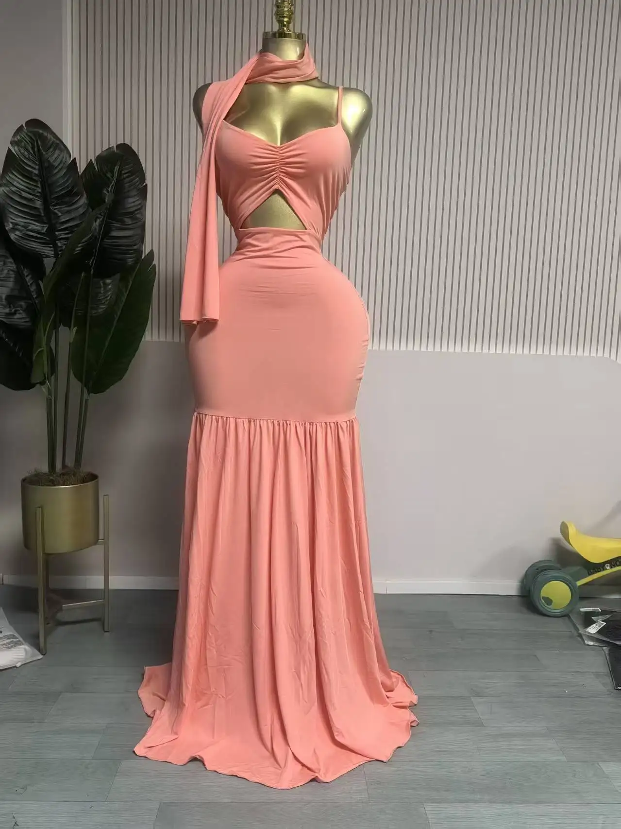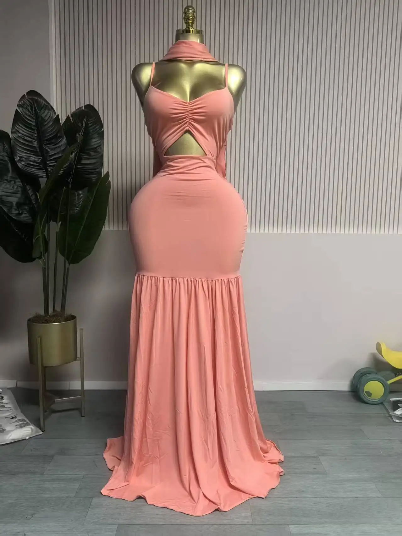 CM.YAYA Abito lungo maxi midi da donna con cinturino senza maniche increspato con scollo a V pieghettato con spacco laterale A-line 2025 Abiti da festa sexy di compleanno