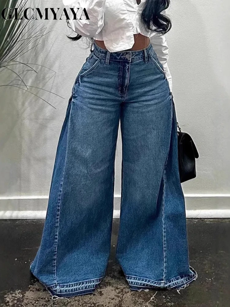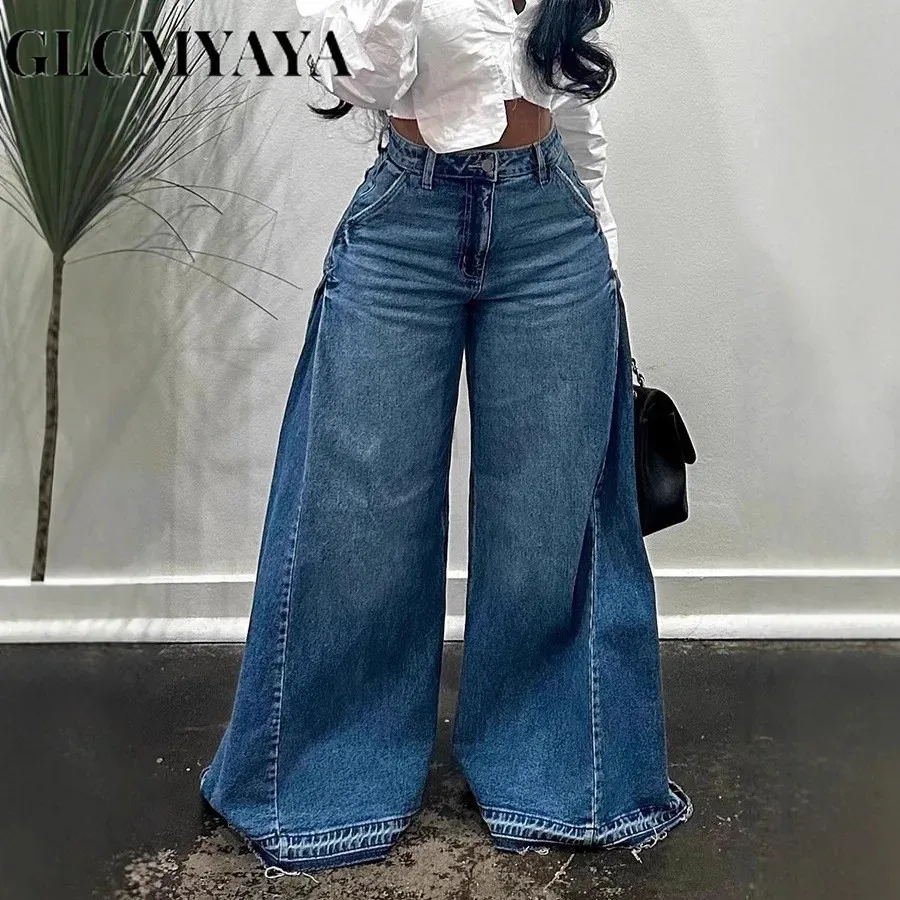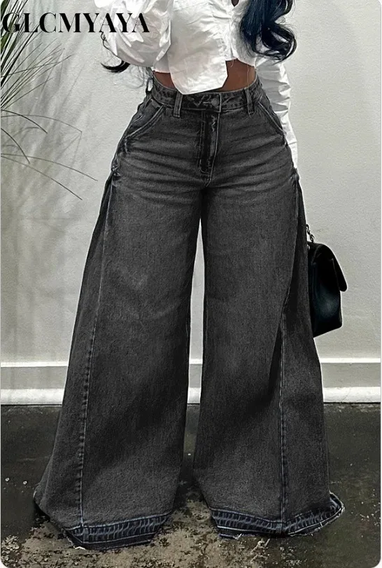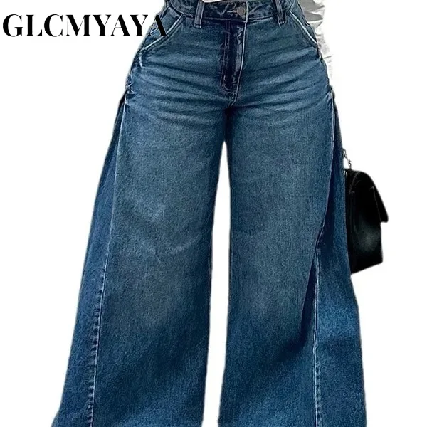 CM.YAYA Donna Streetwear Moda Denim lavato Pantaloni larghi Jeans 2025 Autunno Inverno Allentato Safari Style Cargo Harem Hip Hop Jean