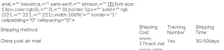 Di solito, spediamo ordini entro 24 ore quando ricevamo il pagamento.Spedito in tutto il mondo tramite posta aerea normale di Hong Kong, di solito prende 35-50 giorni per arrivare, ma a volte può prende o più di 50 giorni (può affettato da ufficio postale, personalizzato o meteo, ecc.)Se gli articoli non ti arricciano mai dopo 50 giorni, ti preghiamo di contattarci, risoltiamo il problema per te presto!
