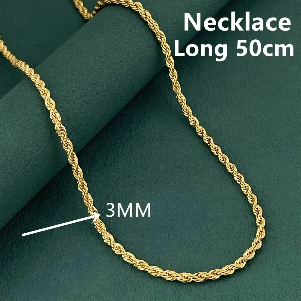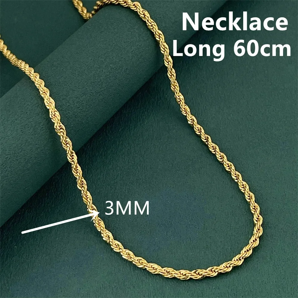 Collana di lusso in argento sterling 925 placcato oro con corda intrecciata da 3 mm per donna uomo accessori gioielli 40-60 cm