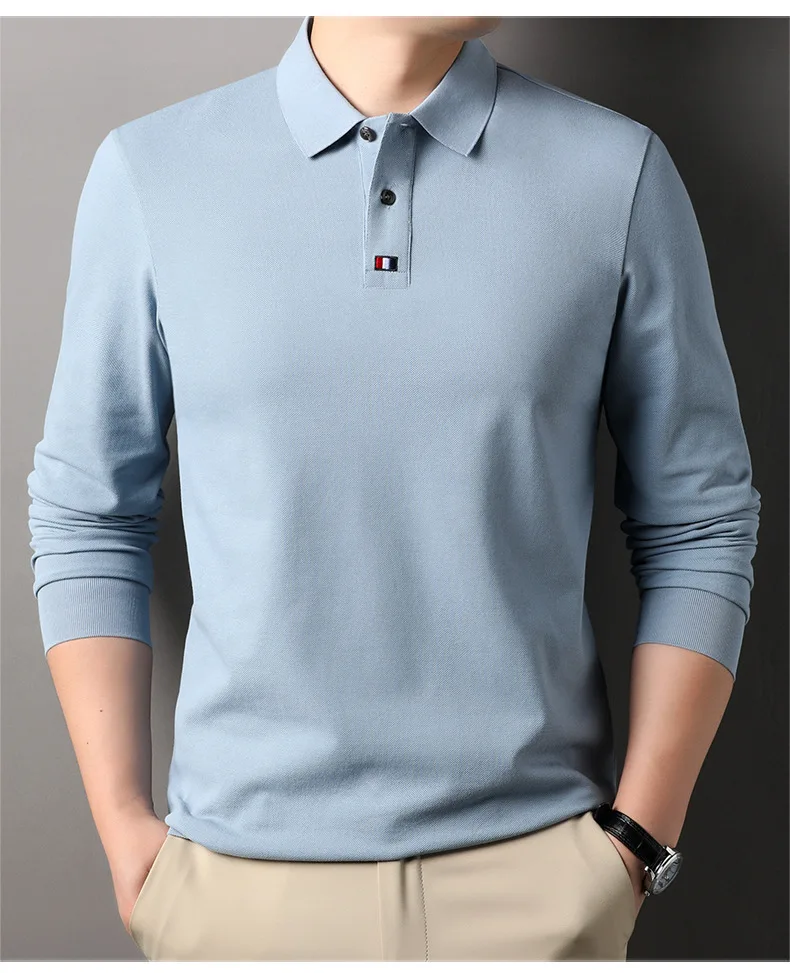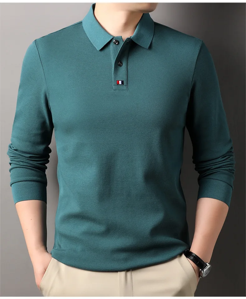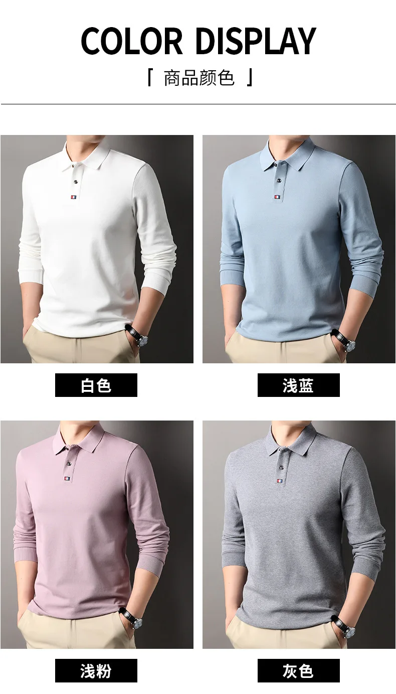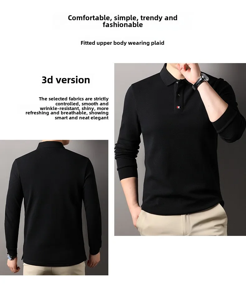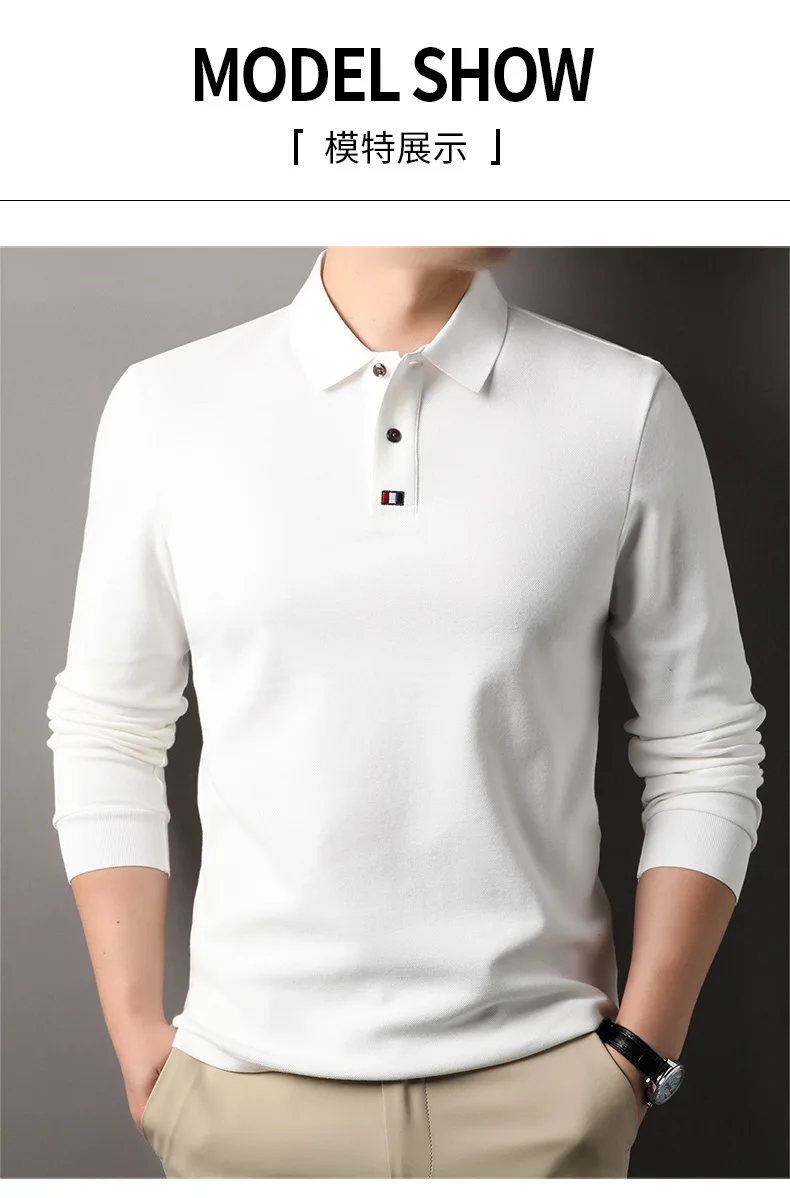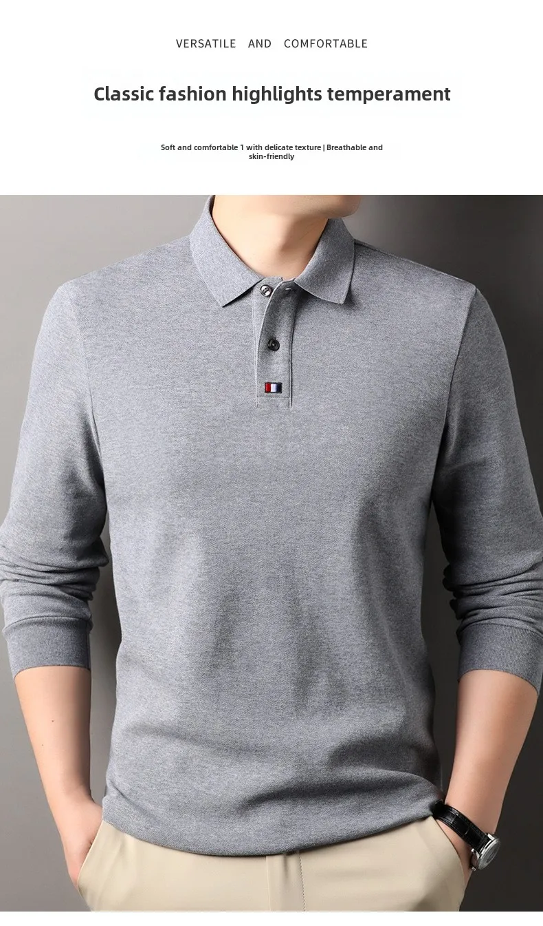 Collar T-shirt for men, long sleeved, autumn, middle-aged, business, pure cotton, casual polo shirt, top for men