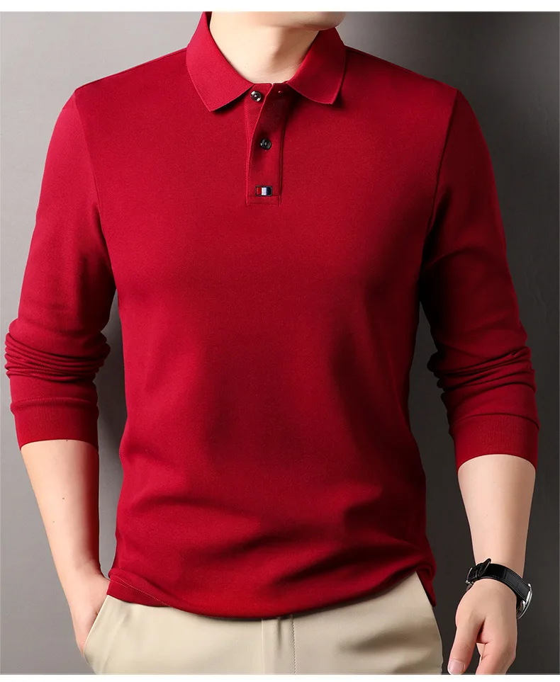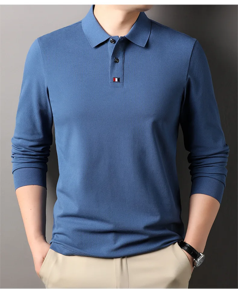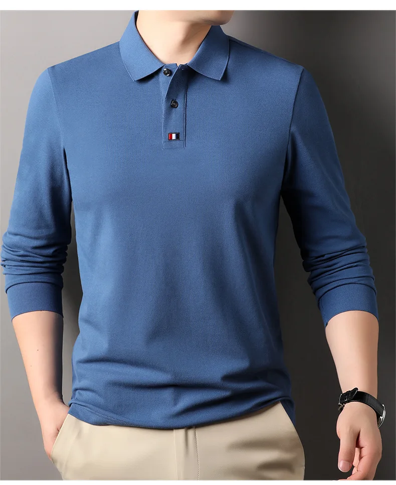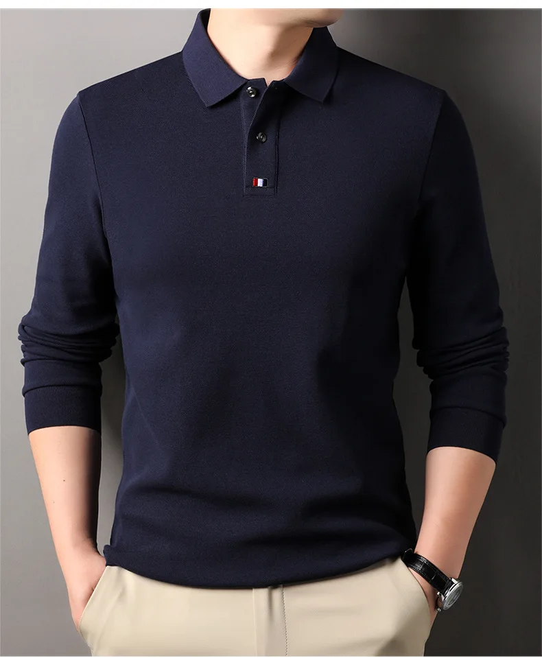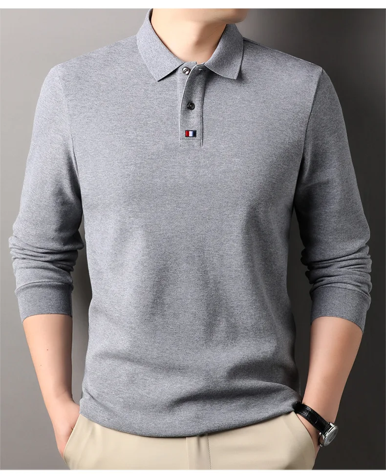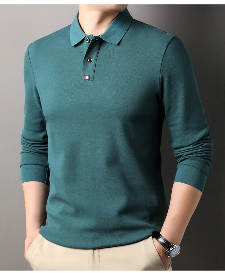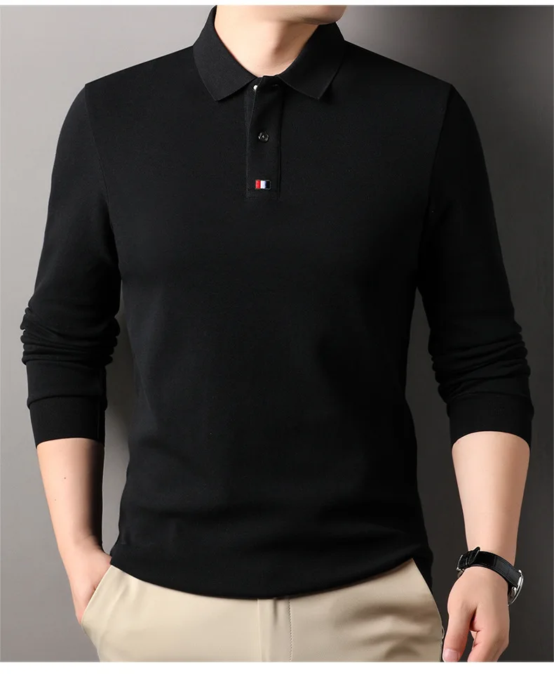 Collar T-shirt for men, long sleeved, autumn, middle-aged, business, pure cotton, casual polo shirt, top for men