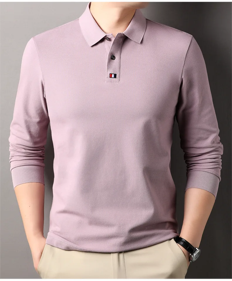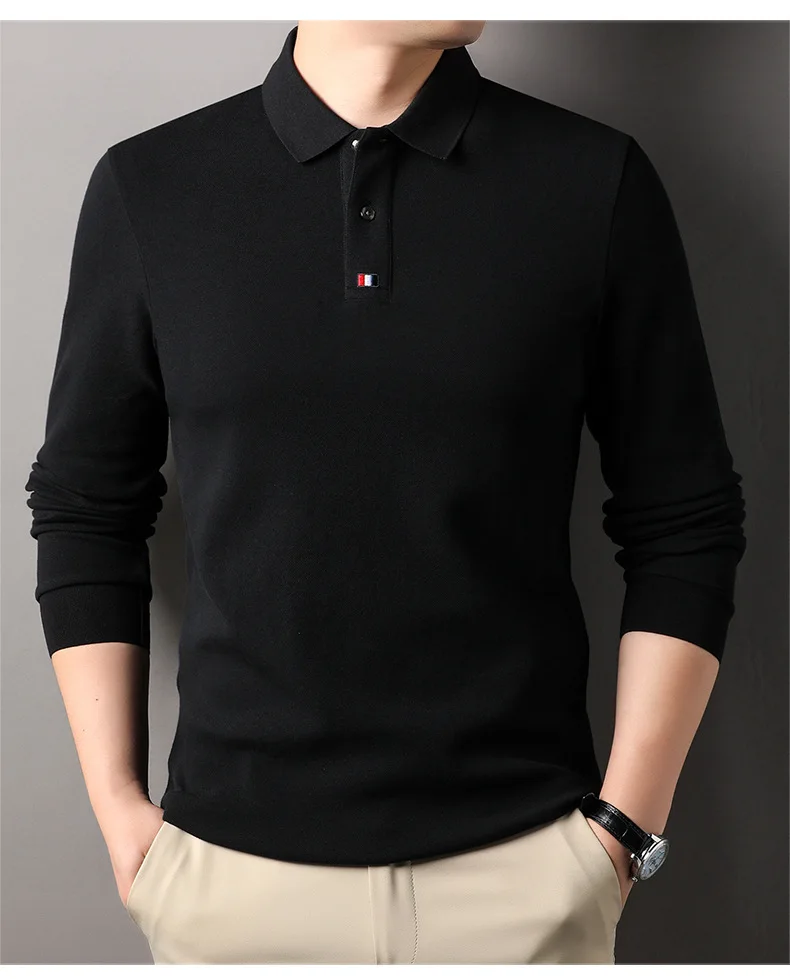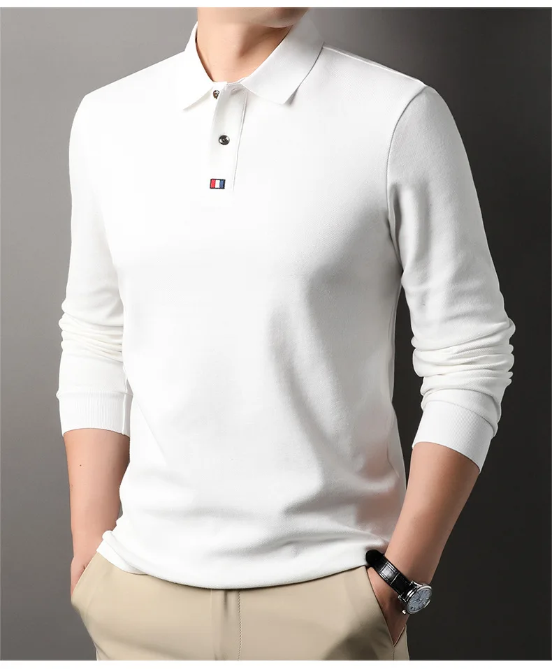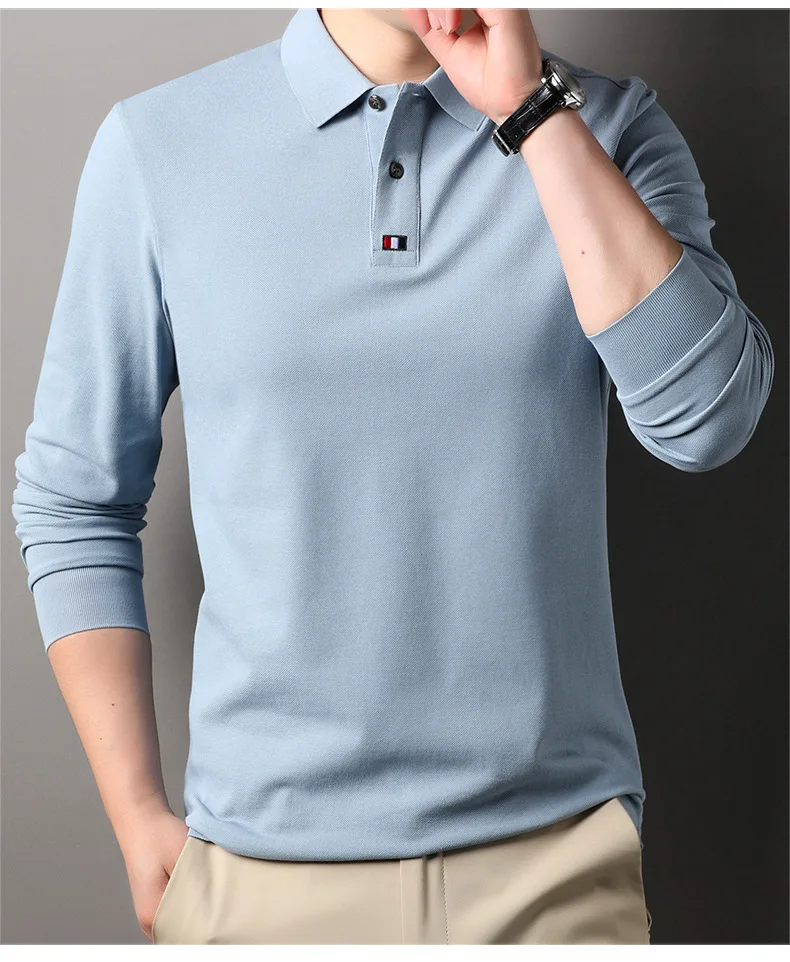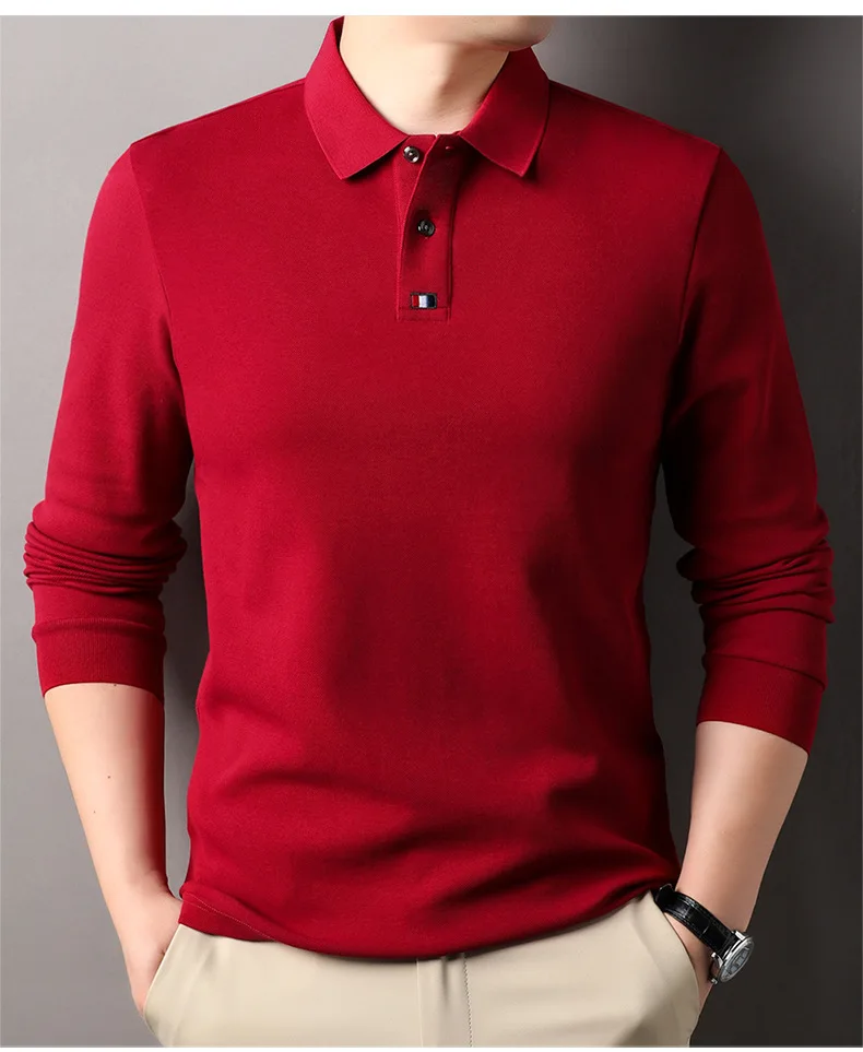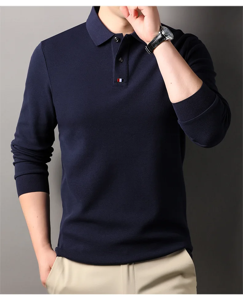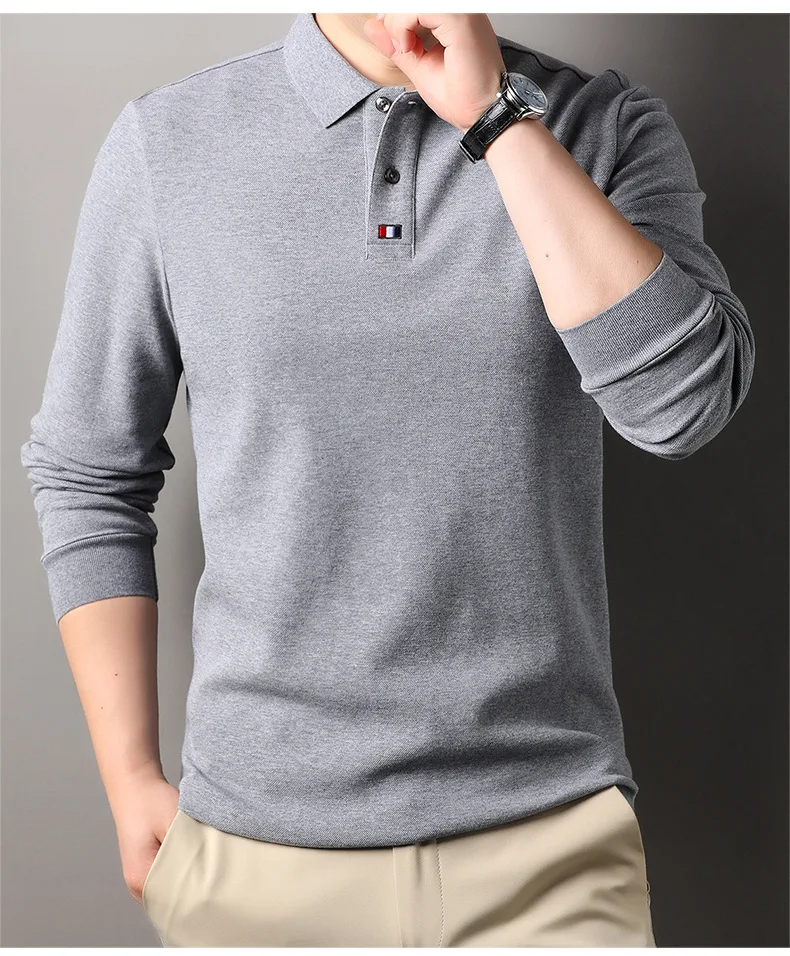 Collar T-shirt for men, long sleeved, autumn, middle-aged, business, pure cotton, casual polo shirt, top for men