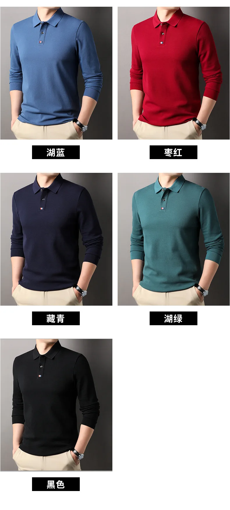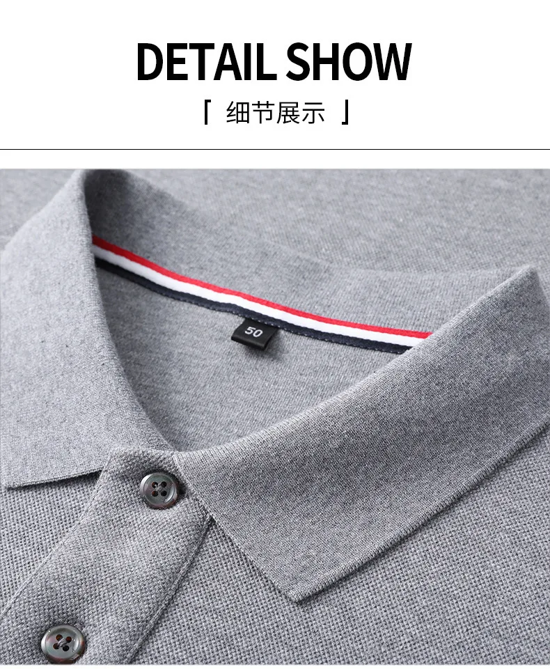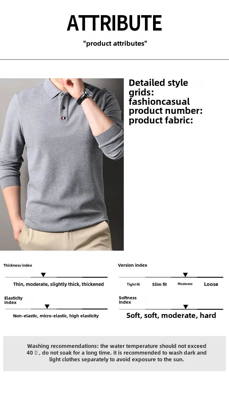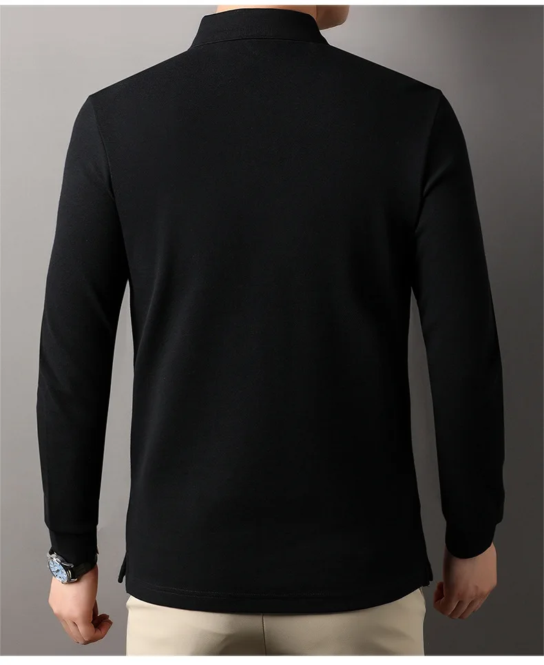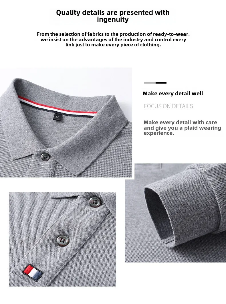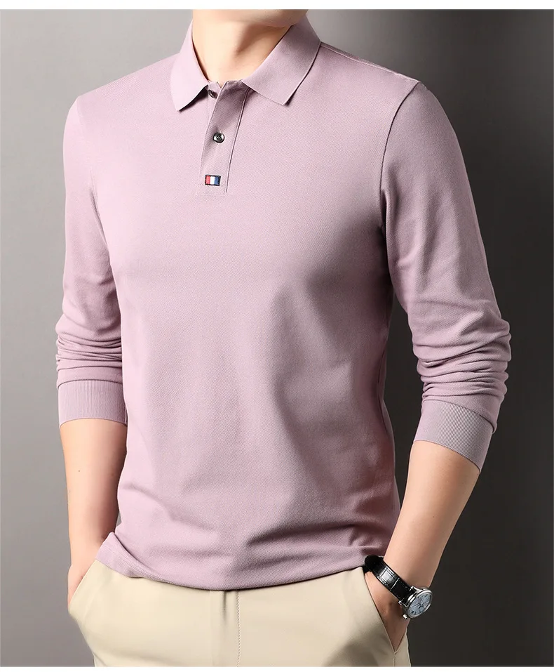 Collar T-shirt for men, long sleeved, autumn, middle-aged, business, pure cotton, casual polo shirt, top for men