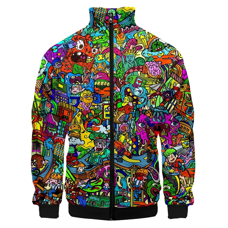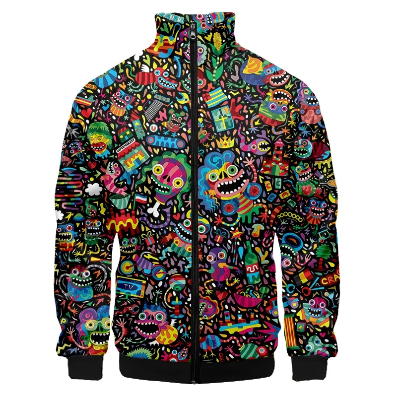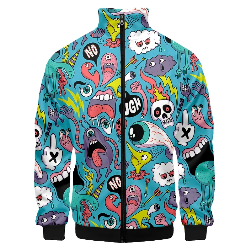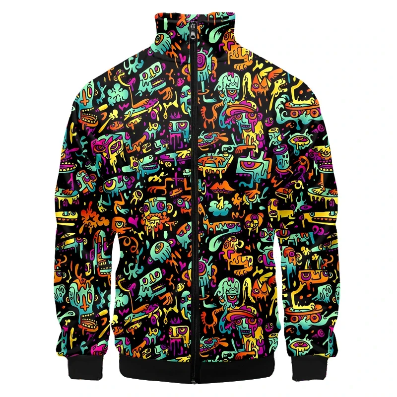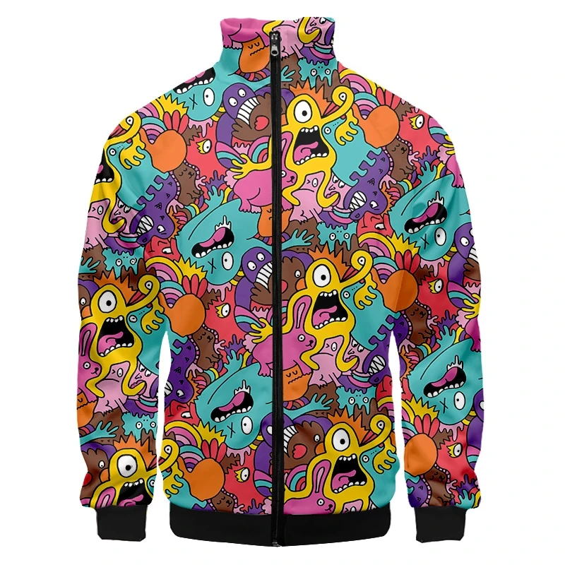 Colorful Monster Graffiti Art giacca da uomo Plus Size 3D abbigliamento sportivo primavera colletto rialzato maglione con cerniera giacca da Baseball da uomo