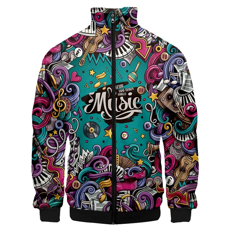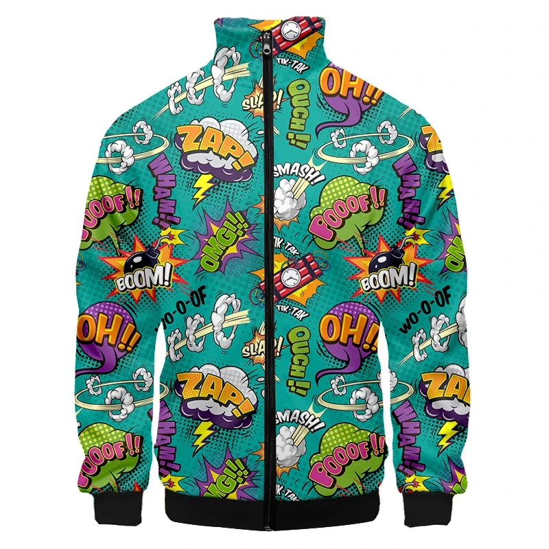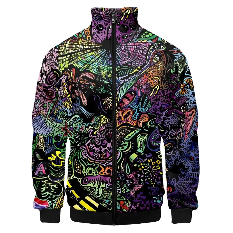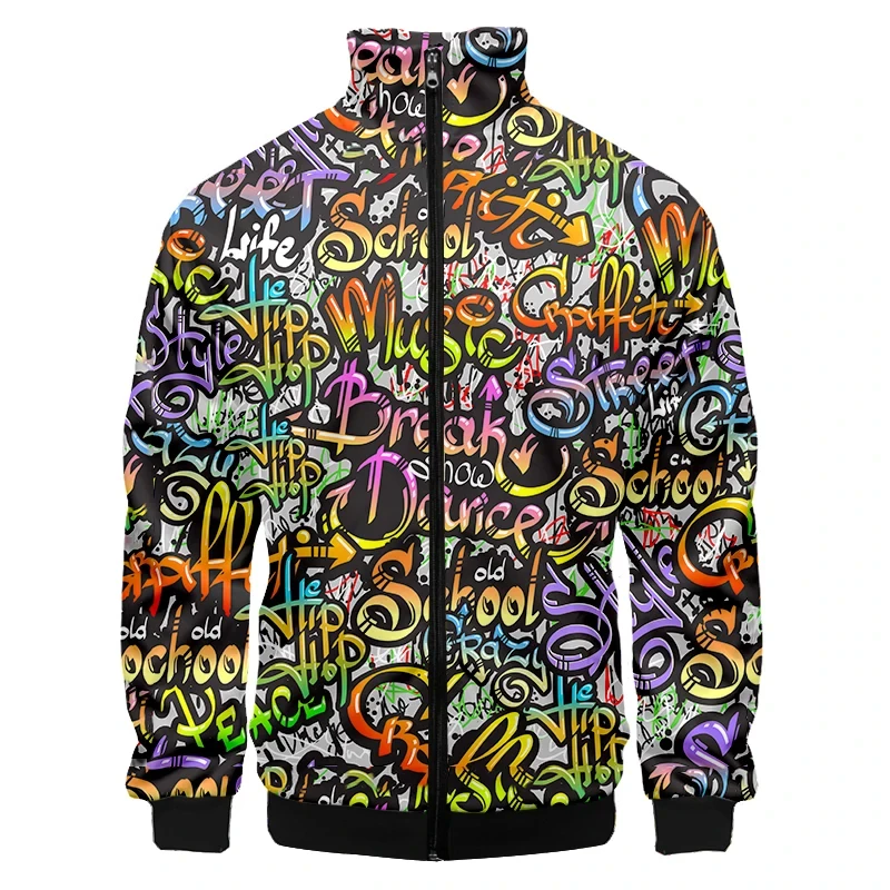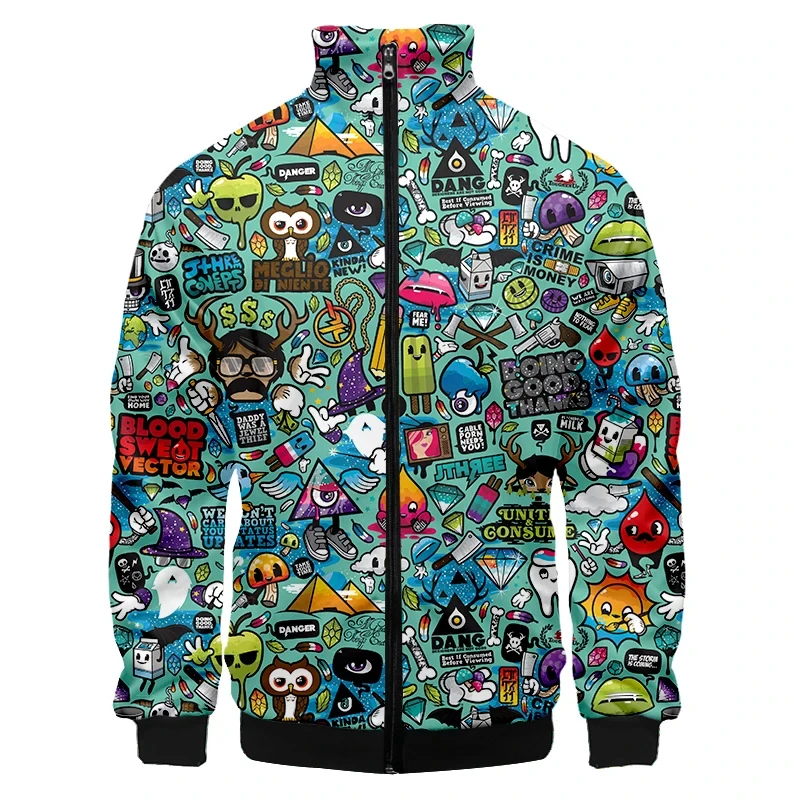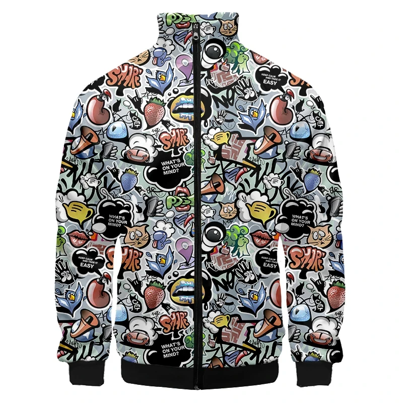 Colorful Monster Graffiti Art giacca da uomo Plus Size 3D abbigliamento sportivo primavera colletto rialzato maglione con cerniera giacca da Baseball da uomo