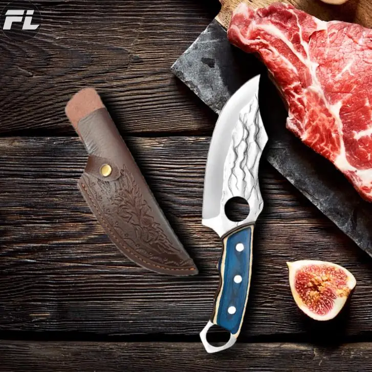 Coltello da cucina e forbici da cucina Set di coltelli per mannaia per carne coltello per disossare da macellaio forgiato a mano forbici per ossa di pollo con guaina