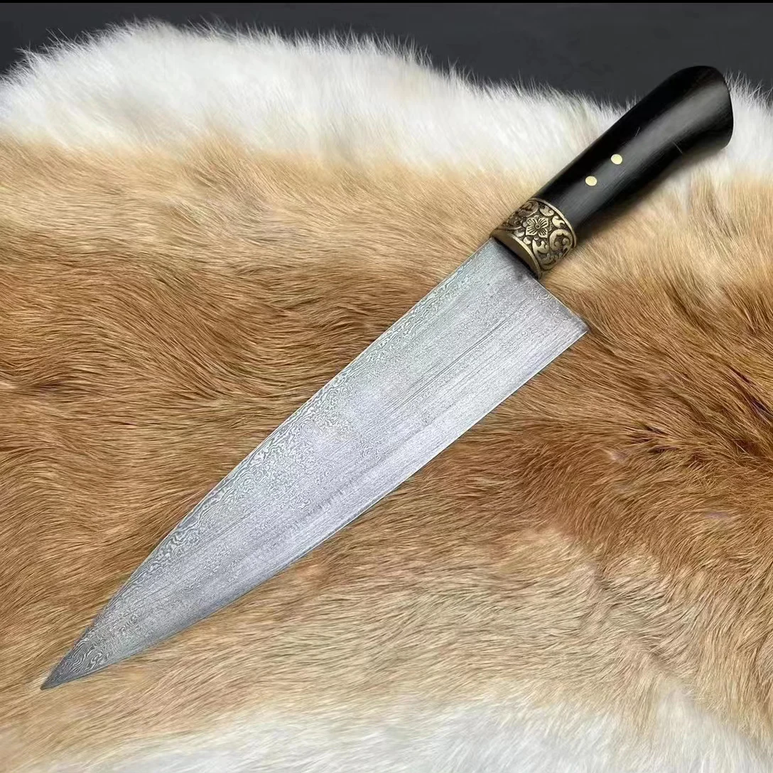Attenzione: I coltelli da cucina fatti a mano in acciaio ad alto tenore di carbonio dovrebbero essere puliti e essiccati dopo l’uso per evitare la ruggine.