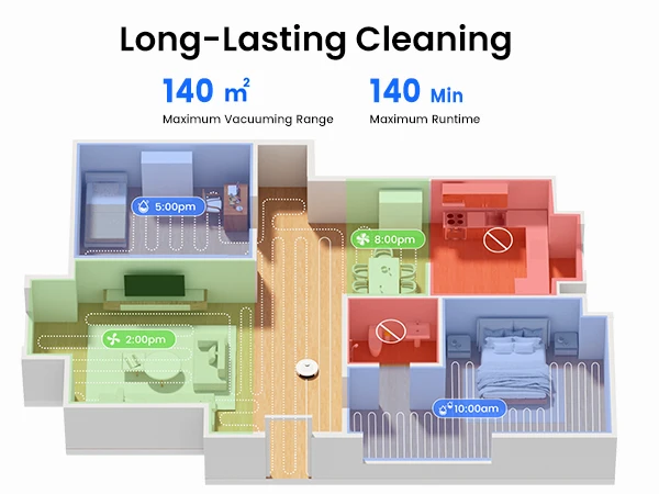 Con una batteria aggiornata, il nostro robot aspirapolvere funziona fino a 140 minuti che può fornire pulizia ininterrotta per un’esperienza migliorata.