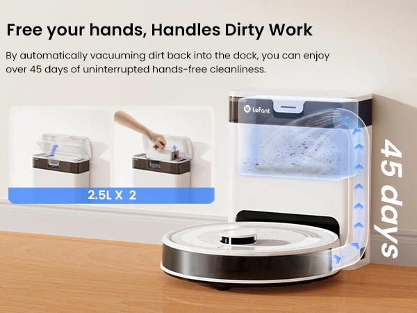 Aspirare automaticamente lo sporco indietro nel dock, puoi godersi superiore a 45 giorni di pulizia ininterrotta a mani libere
