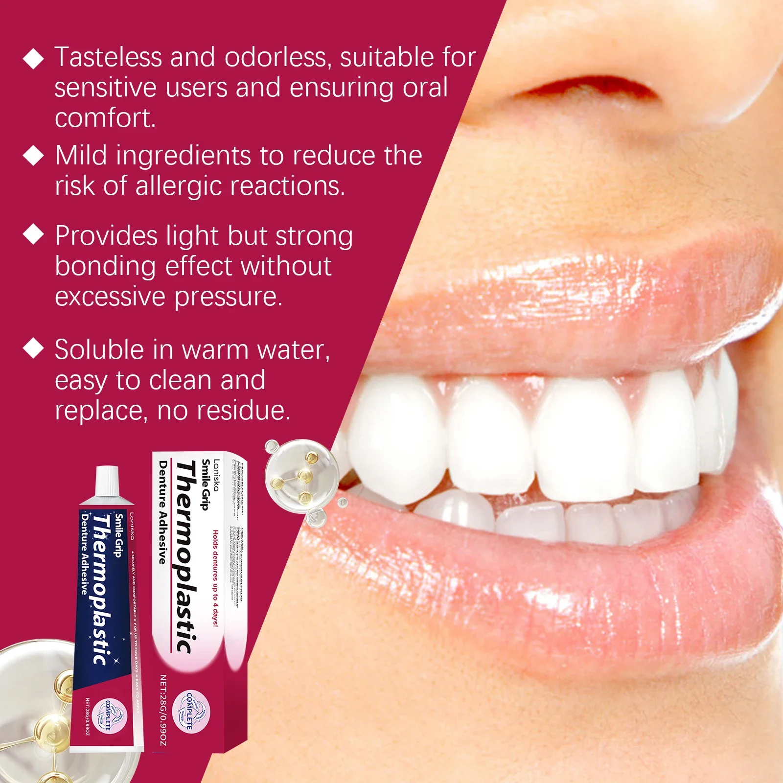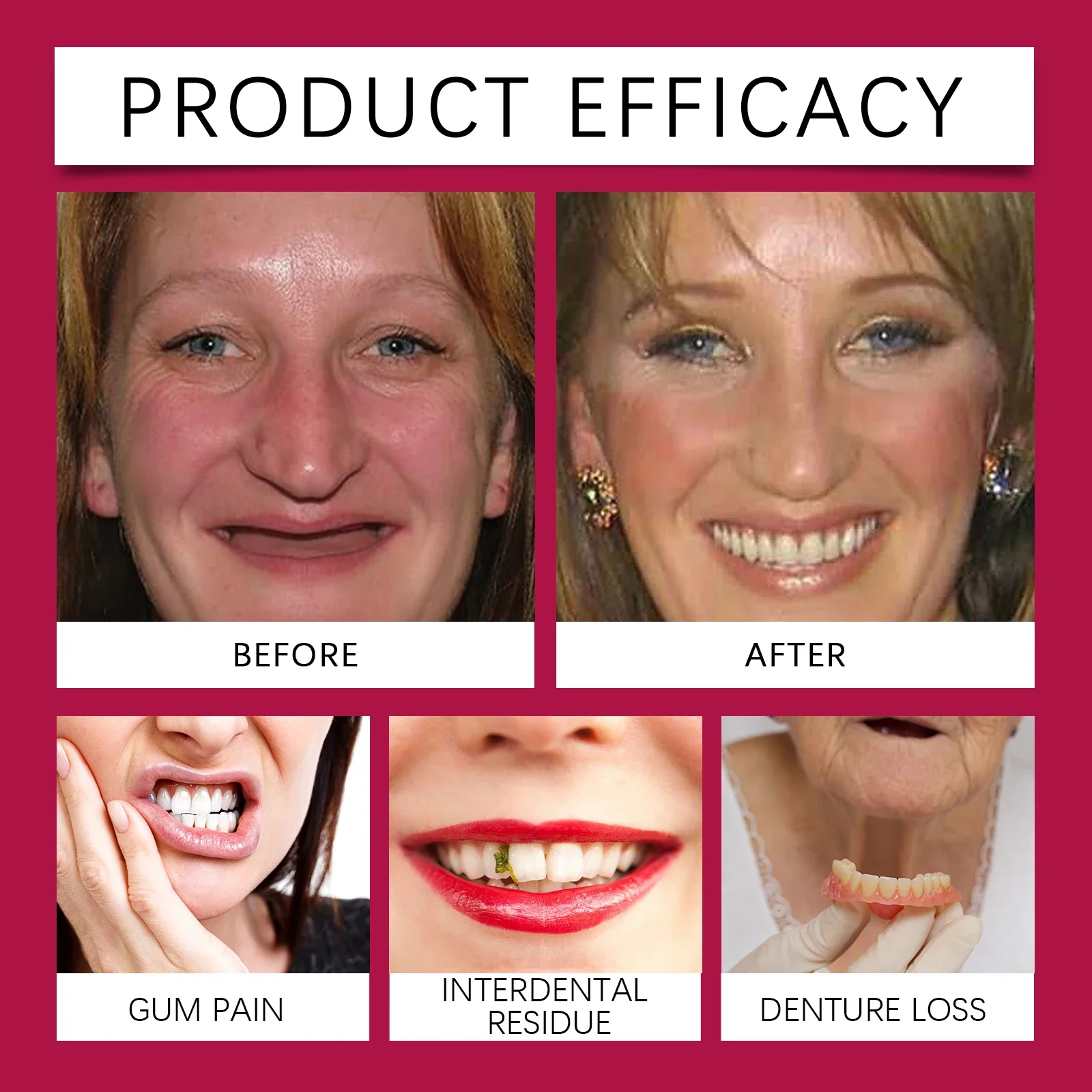 5. Uso multifunzionale: l’adesivo per il fissaggio della protesi non è adatto solo per il fissaggio di protesi, ma anche può essere utilizzato per riparare altri denti o ripara altre parti della bocca danneggiate.