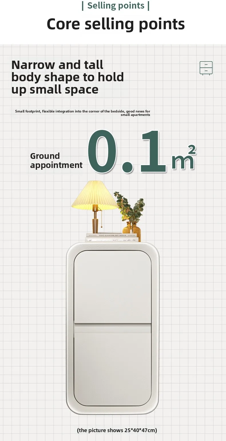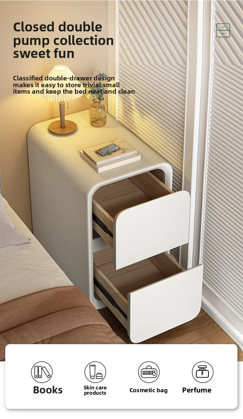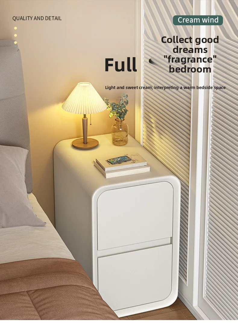 Comodino Comodino stretto portaoggetti piccolo armadietto Camera da letto crema vento legno massello doppia pompaggio crepa pratica