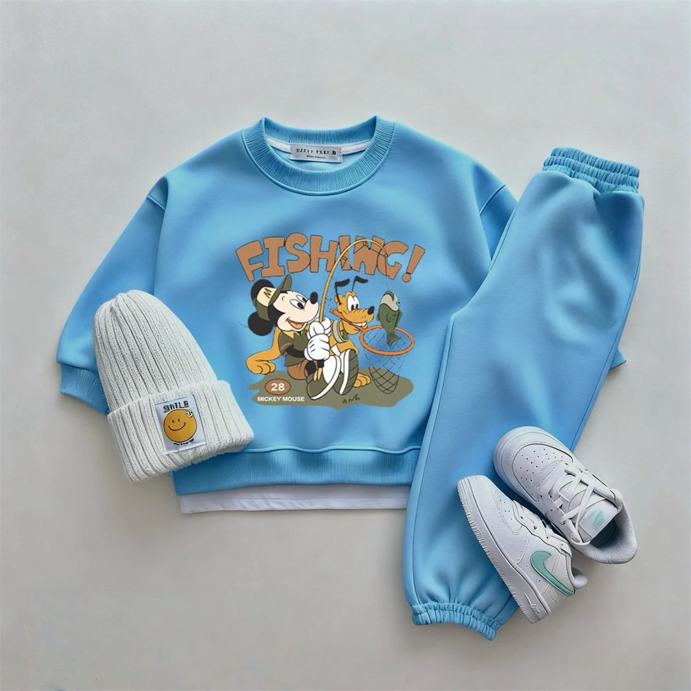 Completi a maniche lunghe per bambini Felpe + pantaloni da cartone animato Set da due pezzi Pantaloni larghi con cappuccio carino per bambini Nuovi vestiti popolari per bambini