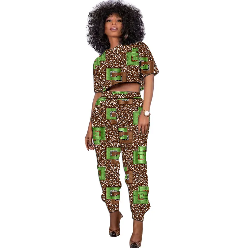 Completo da donna estivo con stampa africana, top corti con pantaloni da jogging, abbigliamento Casual femminile Ankara