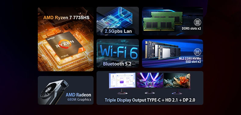 Computer desktop da gioco Chatreey AN3P Mini PC R7 7735HS 680M con WiFi 6/Bluetooth 5.2/HDMI/DP