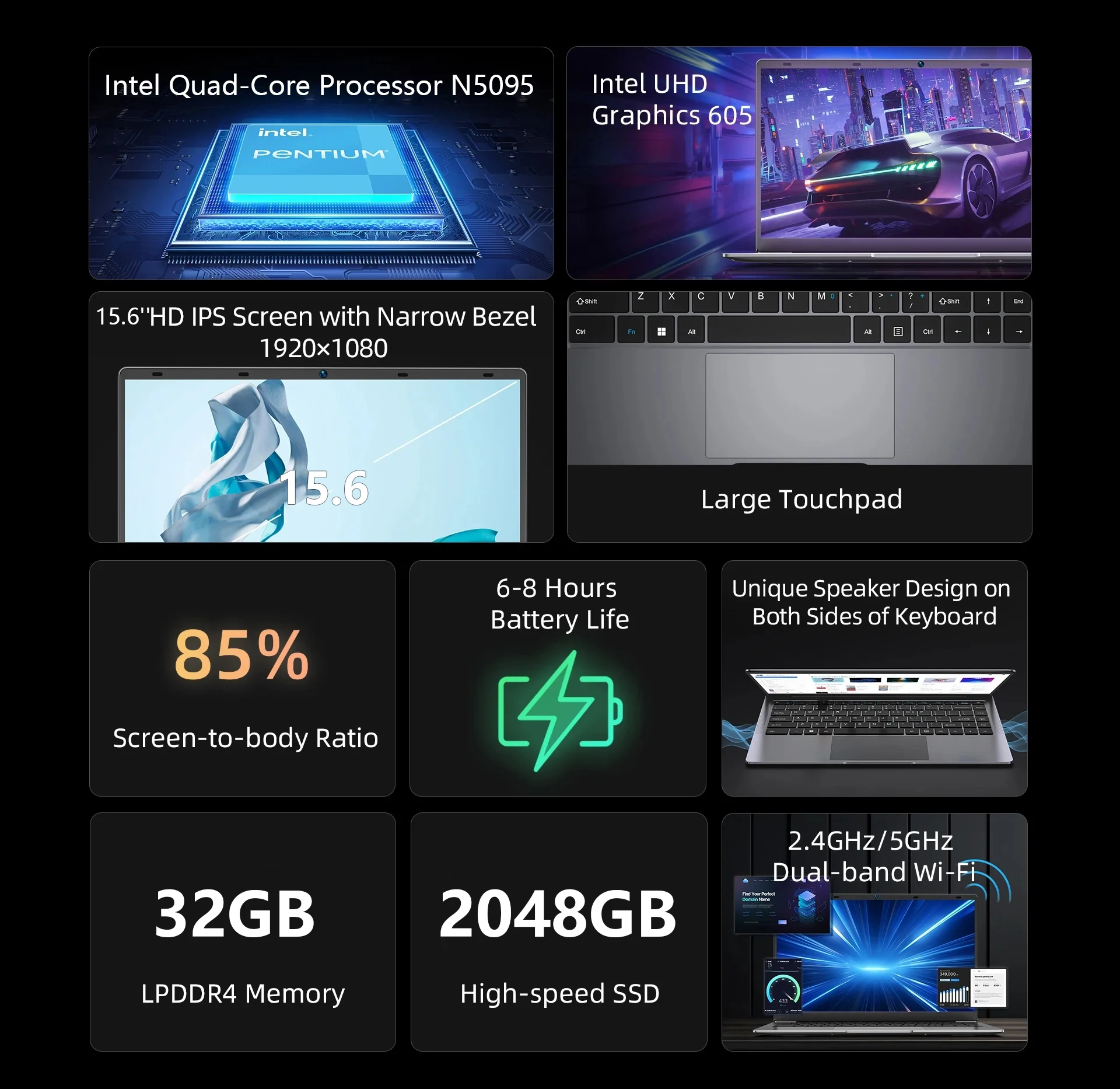 Il chip Intel Jasper Lake N5095 dà velocità e potere da 15,6 pollici, disturbi.Con prestazioni della CPU fino a 2,90 GHZ.L’ultimo processore Intel nel 2021.30% di miglioramento delle prestazioni nella generazione precedente.Lago Intel Gemini N5095.È il nostro notebook professionale più popolare, preso a un livello intero ora.