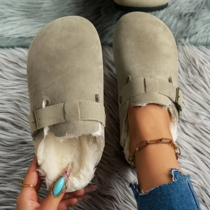 Comwarm Zoccoli foderati in pelliccia per donna Uomo Inverno Pantofole in sughero sfocato Pelliccia di sughero Muli Breve peluche Casa Scarpe in sughero Inverno Zuecos Mujer