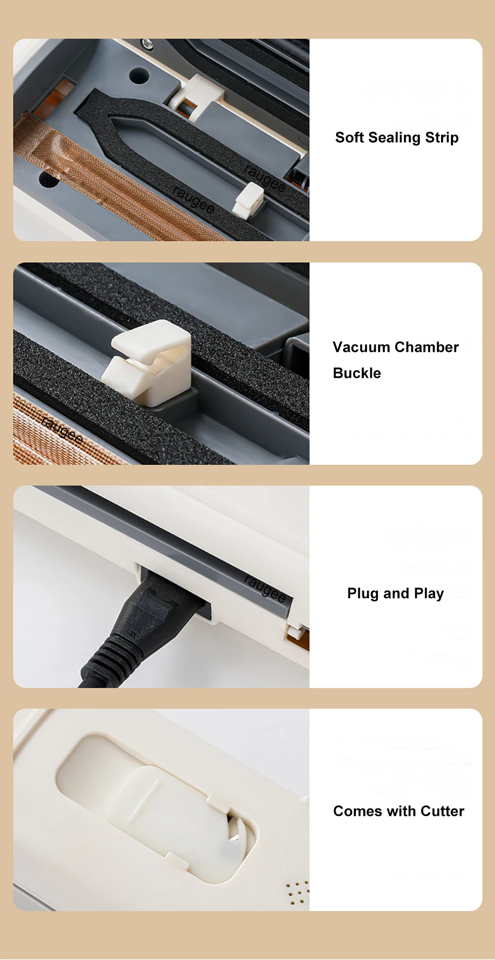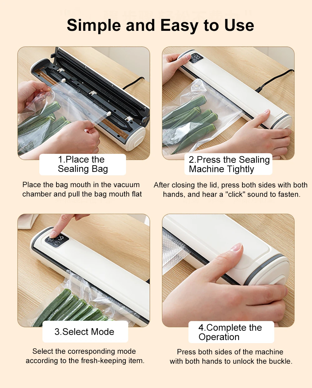 Funzionamento One-Touch: con una sola pressione, la macchina per sottovuoto per alimenti rimuove l’aria e sigilla in pochi secondi.Nessun passaggio complicato: solo cibo fresco e saporito con il minimo sforzo!Perfetto per la preparazione dei pasti, la conservazione sfusa e la cottura sottovuoto.
