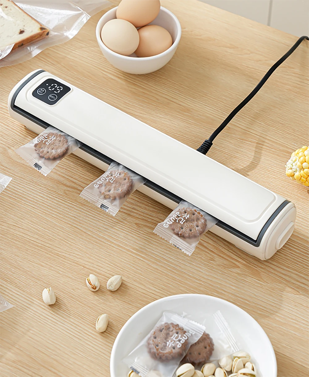Freschezza a lunga durata: dì addio ai rifiuti alimentari!Rimuovendo l’aria e prevenendo le bruciature da congelamento, questa macchina per sottovuoto prolunga la durata di conservazione mantenendo intatti sapori, trame e sostanze nutritive.Goditi pasti più freschi e sani più a lungo.