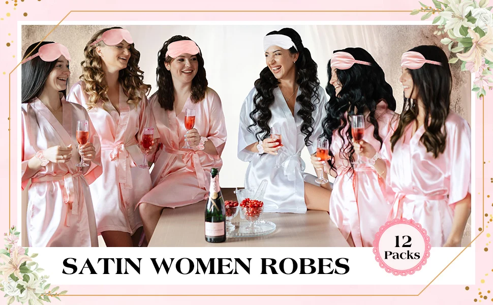 Confezione da 12 vestaglie da donna in raso, kimono, vestaglia sfusa con maschera per dormire e set di cravatte per capelli, accappatoi setosi per la festa di compleanno, matrimoni