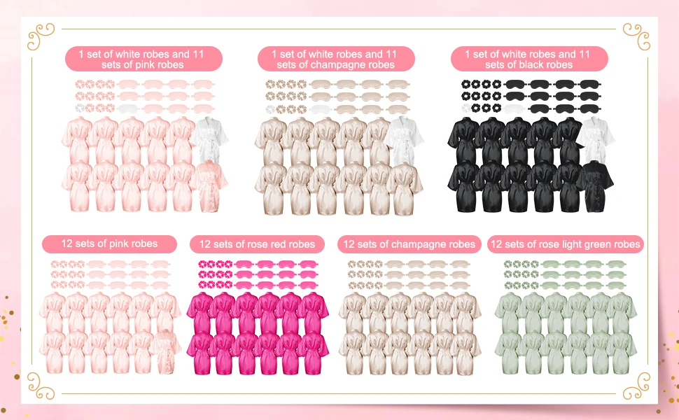 Confezione da 12 vestaglie da donna in raso, kimono, vestaglia sfusa con maschera per dormire e set di cravatte per capelli, accappatoi setosi per la festa di compleanno, matrimoni 1Confezione da 12 vestaglie da donna in raso, kimono, vestaglia sfusa con maschera per dormire e set di cravatte per capelli, accappatoi setosi per la festa di compleanno, matrimoni