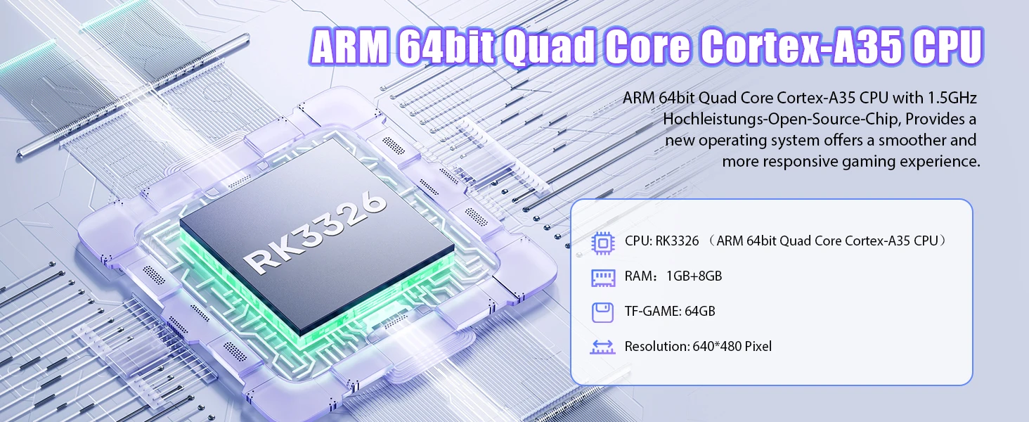 Utilizzando il chip professionale RK3326, può eseguire in modo curvato in modo 2D e alcuni giochi 3D, con prestazioni eccellenti.
