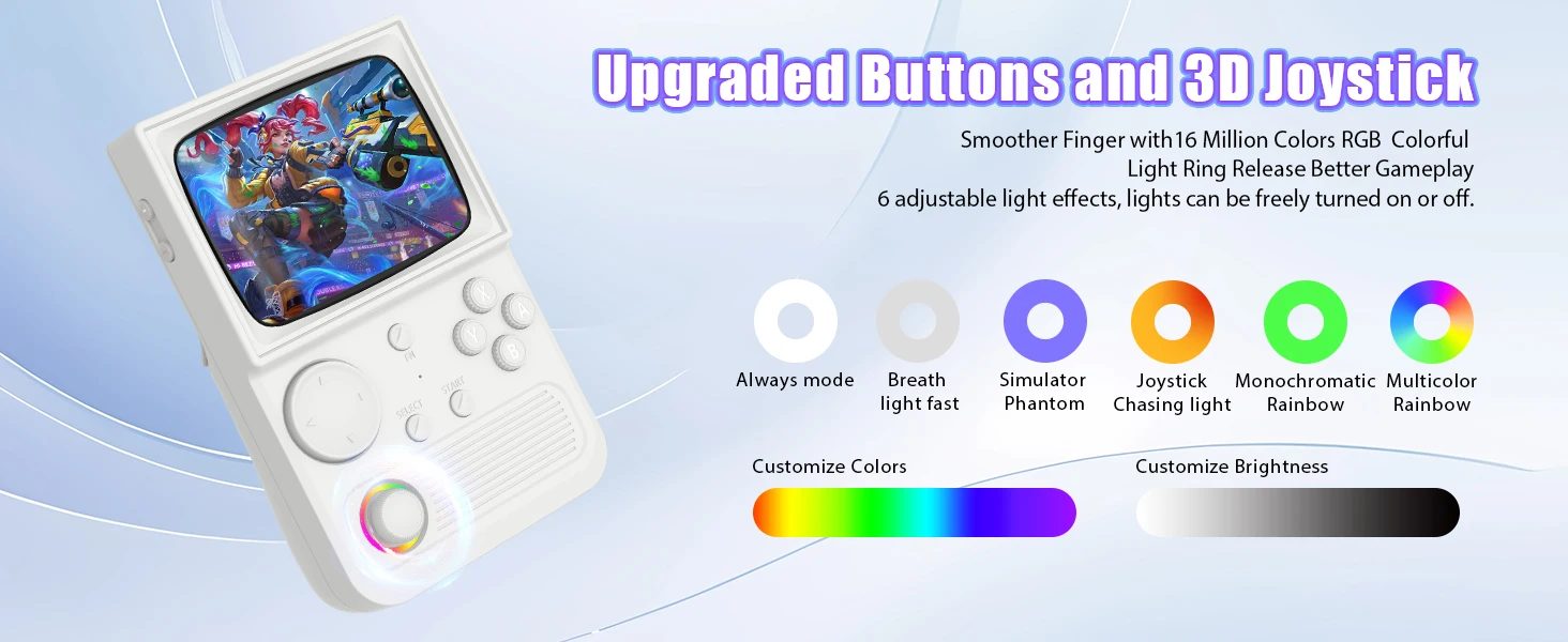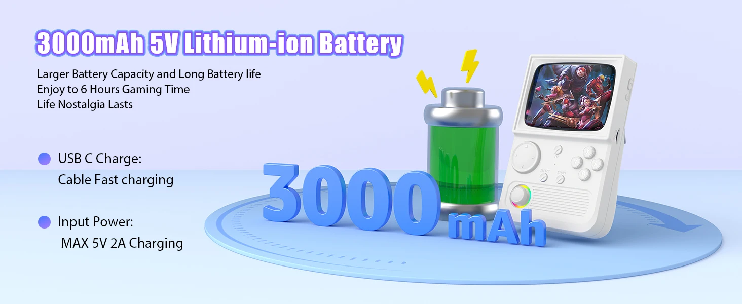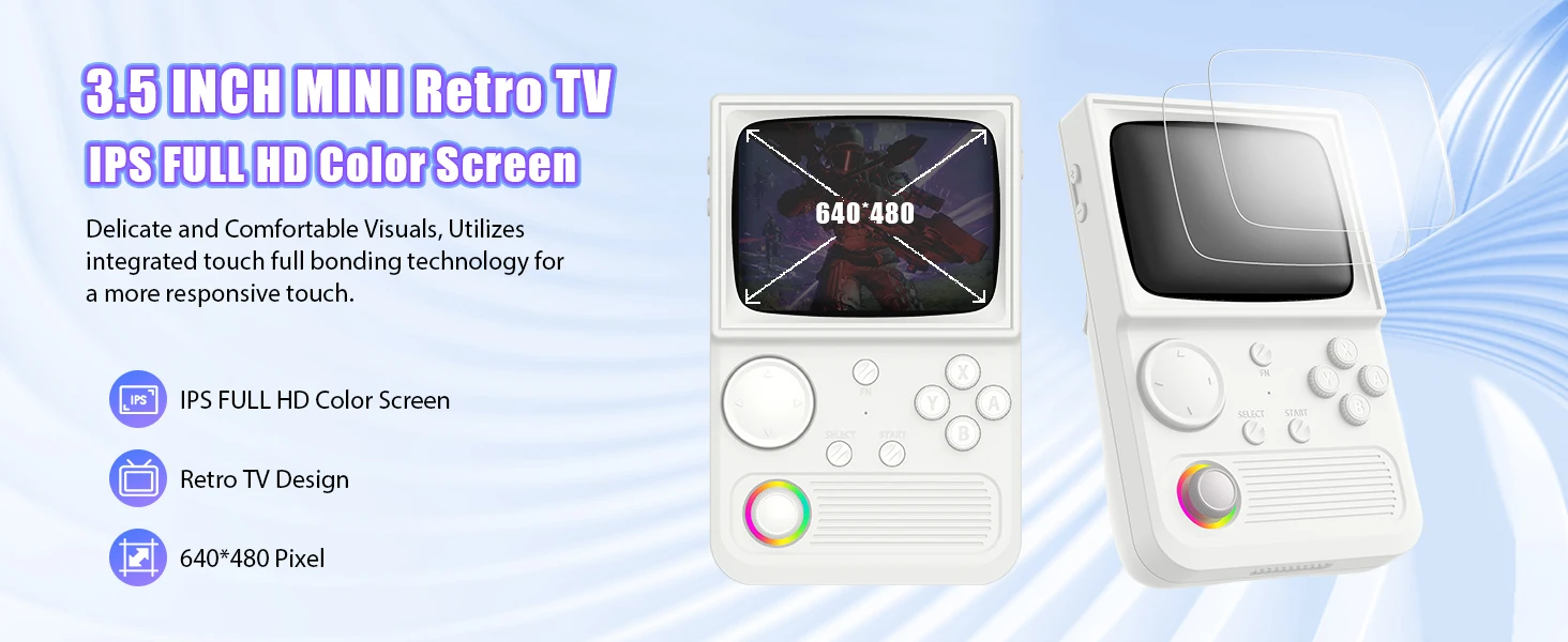 Lo schermo è un display HD IPS da 3,5 pollici, portando la classica TV retrò sembrano in uno con una tecnologia moderna.Viene fornito con colori vivaci e visualizzazione chiara per portare il gioco per la vita e migliorare l’esperienza di gioco.È pieno di nostalgia che ti consentono di restituire istantaneamente la tua infanzia.