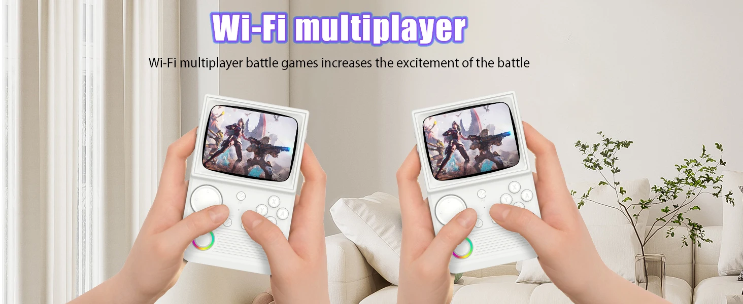 WiFi integrato consente di riprodurre giochi con i tuoi amici nella rete locale multigiocatore in tempo reale.La funzione di connessione integrata di R36T rende la battaglia facile e comoda, senza bisogno di un Dongle OTG aggiuntivo, puoi sfare i tuoi amici locale.