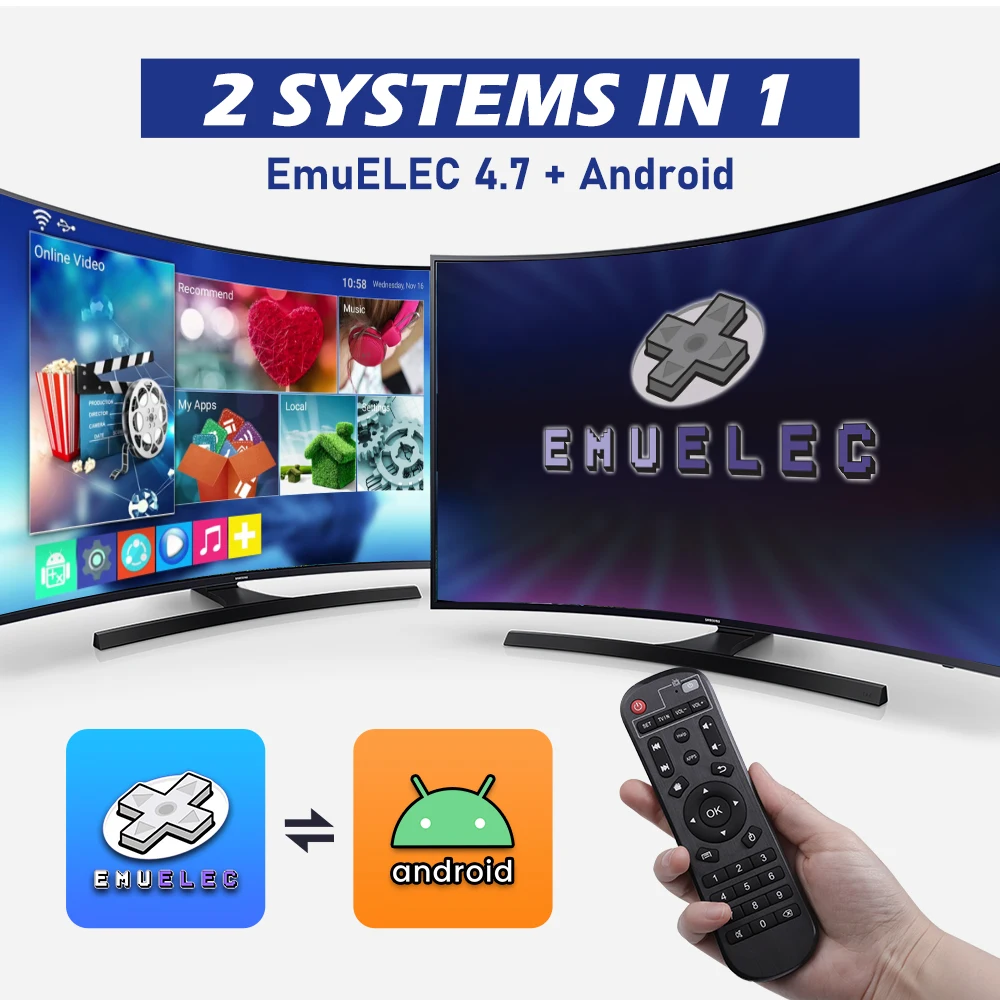 La console ha il sistema di gioco EMUELEC 4.7, un sistema Android 9.0 Android.Non è solo una scatola TV ma anche una console di gioco.