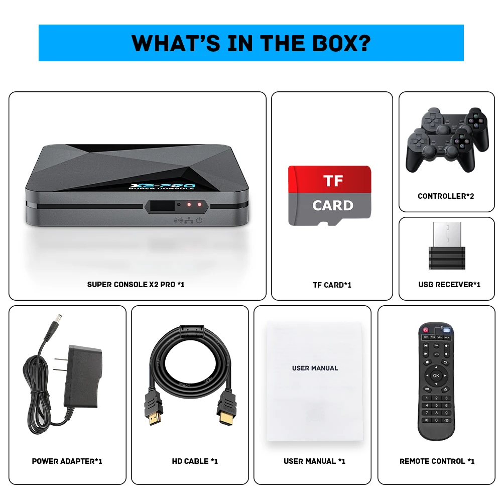 Questo super console x2 Pro supporta oltre 60 emulatori, supporta perfettamente PSP/PS1/Sega Saturn/N64/MAME/DC, ecc.Al stesso tempo, ci sono carte TF 64G/128G/256G, 80.000/86,000/100.000 giochi retrò classici integrati, in attesa tra cui scegliere